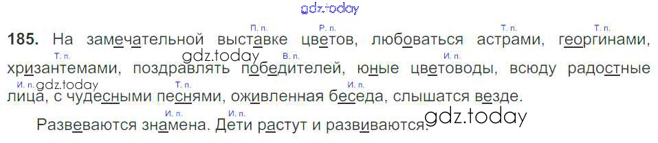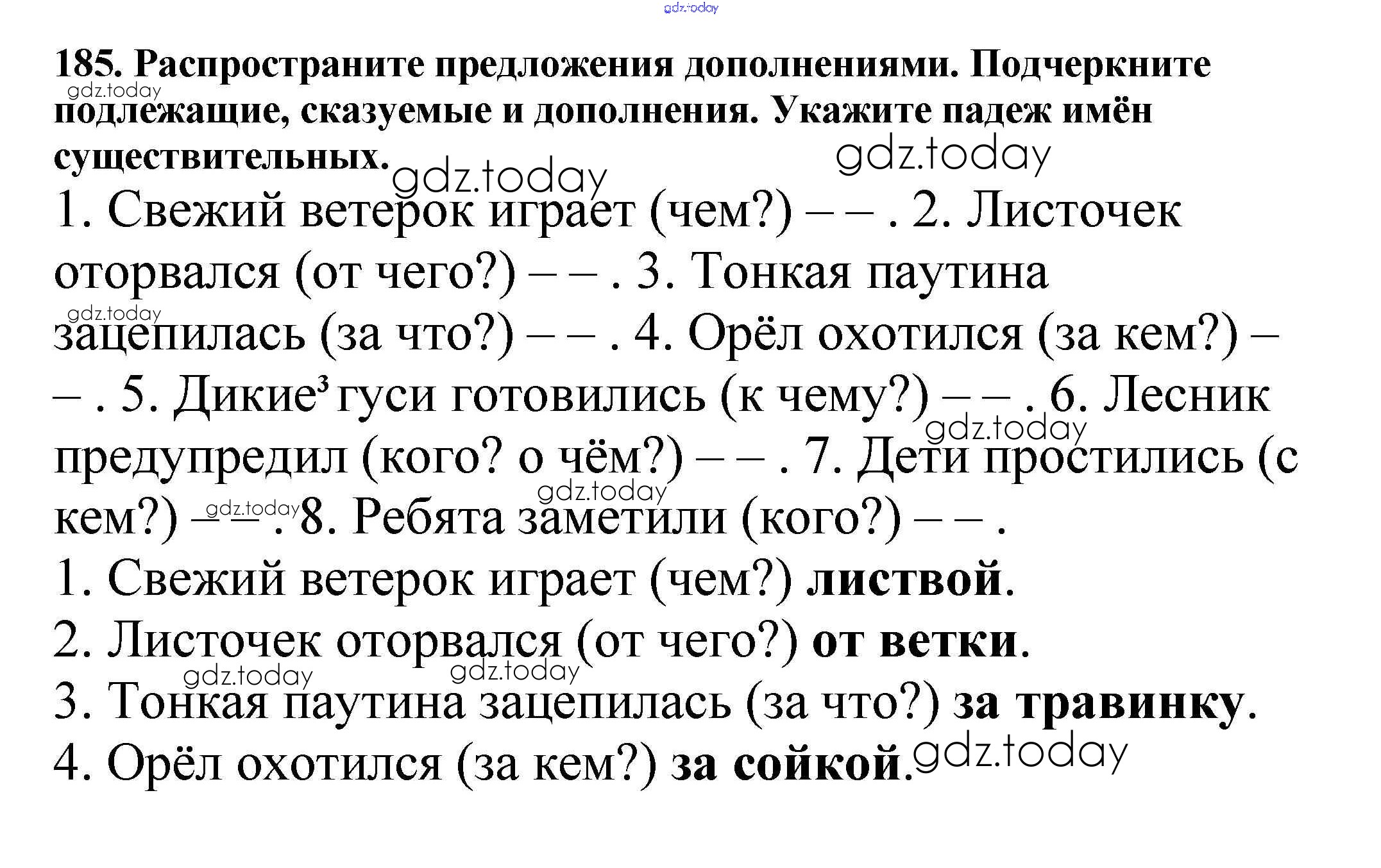 Ответы к Часть 1. Решение к упражнениям 185 Учебнику по Русскому языку для 5 класса Баранов, Ладыженская Просвещение, Просвещение 2016, 2019