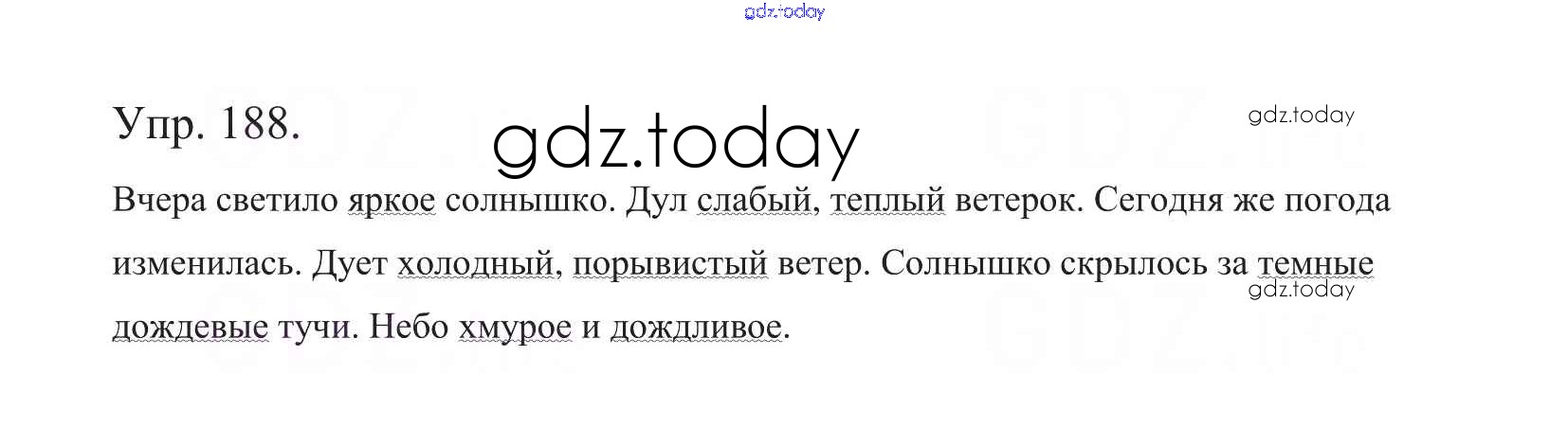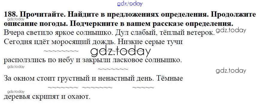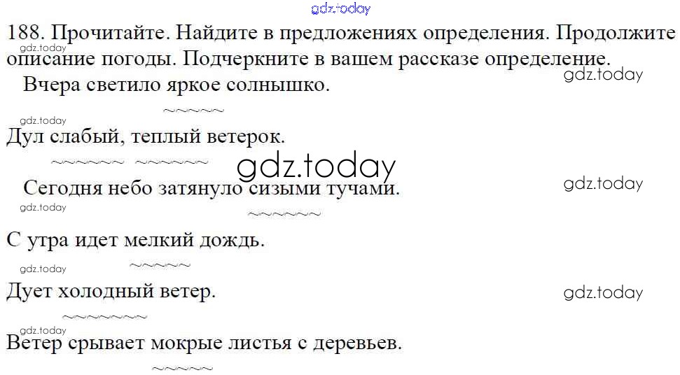 На страницах сайта gdz.today вы найдете учебный и вспомогательный материал, направленный на улучшения знаний школьной программы. ГДЗ - онлайн мир знаний Часть 1. Решение к упражнениям 188 Учебнику по Русскому языку для 5 класса Баранов, Ладыженская Просвещение, Просвещение 2016, 2019