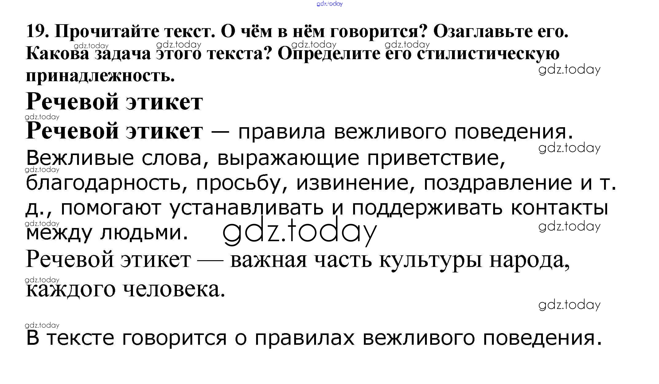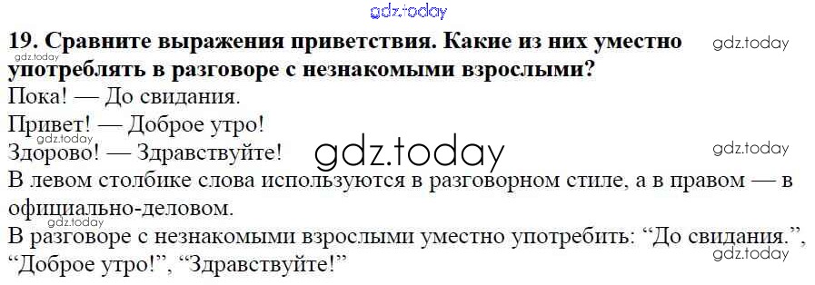 На страницах сайта gdz.today вы найдете учебный и вспомогательный материал, направленный на улучшения знаний школьной программы. ГДЗ - онлайн мир знаний Часть 1. Решение к упражнениям 19 Учебнику по Русскому языку для 5 класса Баранов, Ладыженская Просвещение, Просвещение 2016, 2019