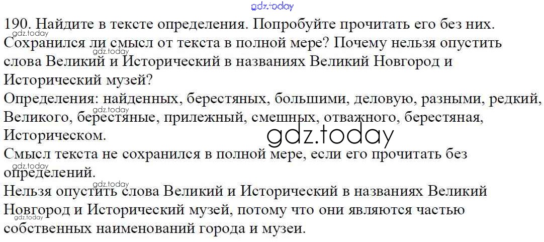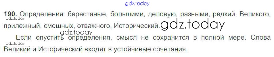 Ответы к Часть 1. Решение к упражнениям 190 Учебнику по Русскому языку для 5 класса Баранов, Ладыженская Просвещение, Просвещение 2016, 2019
