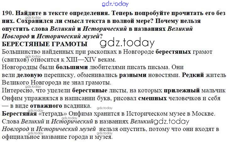 На страницах сайта gdz.today вы найдете учебный и вспомогательный материал, направленный на улучшения знаний школьной программы. ГДЗ - онлайн мир знаний Часть 1. Решение к упражнениям 190 Учебнику по Русскому языку для 5 класса Баранов, Ладыженская Просвещение, Просвещение 2016, 2019