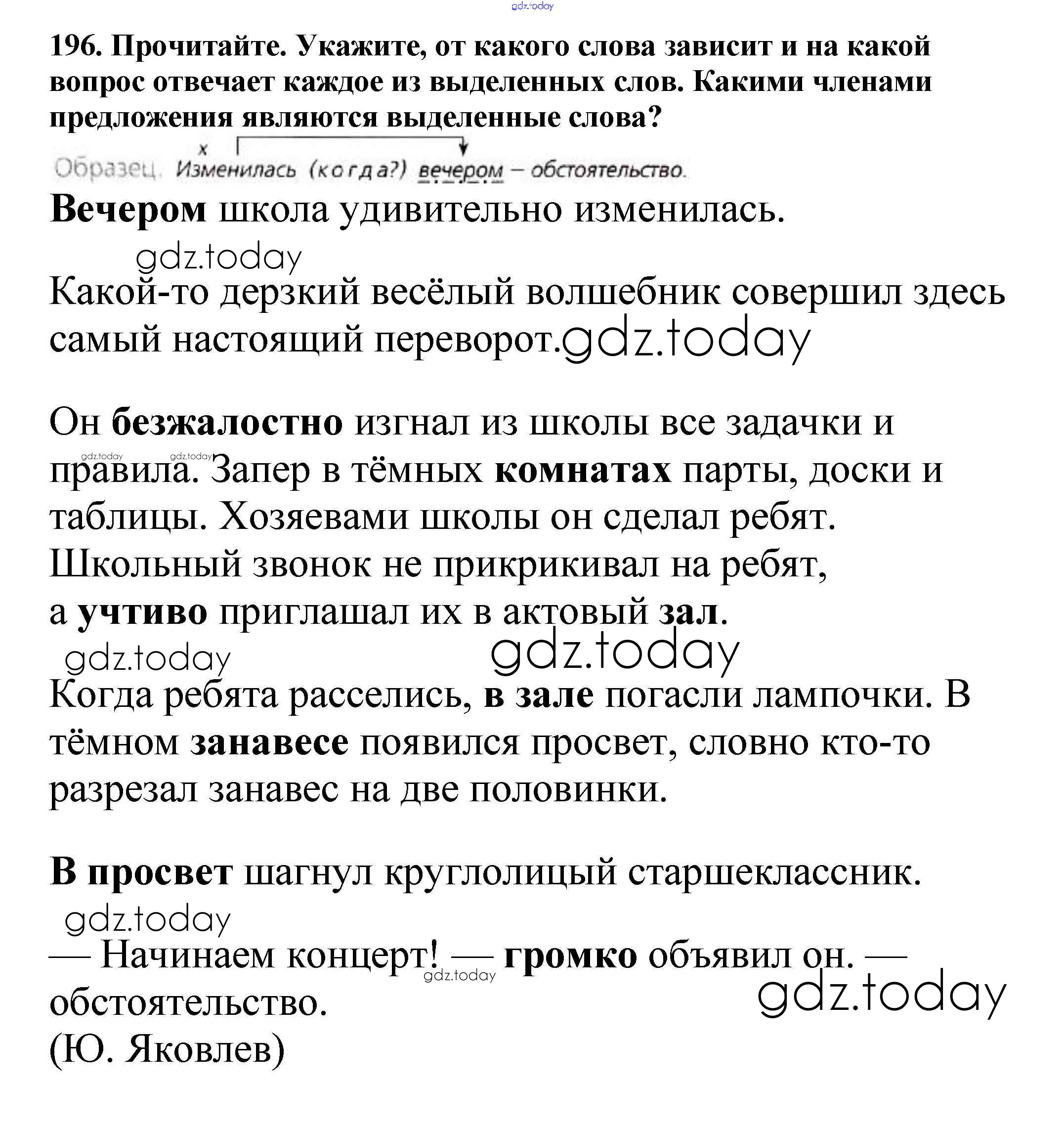На страницах сайта gdz.today вы найдете учебный и вспомогательный материал, направленный на улучшения знаний школьной программы. ГДЗ - онлайн мир знаний Часть 1. Решение к упражнениям 196 Учебнику по Русскому языку для 5 класса Баранов, Ладыженская Просвещение, Просвещение 2016, 2019