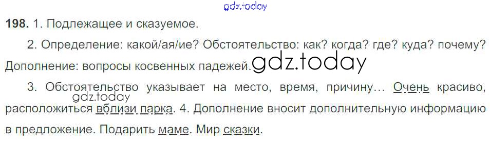 На страницах сайта gdz.today вы найдете учебный и вспомогательный материал, направленный на улучшения знаний школьной программы. ГДЗ - онлайн мир знаний Часть 1. Решение к упражнениям 198 Учебнику по Русскому языку для 5 класса Баранов, Ладыженская Просвещение, Просвещение 2016, 2019