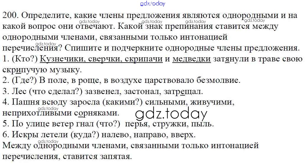 Ответы к Часть 1. Решение к упражнениям 200 Учебнику по Русскому языку для 5 класса Баранов, Ладыженская Просвещение, Просвещение 2016, 2019