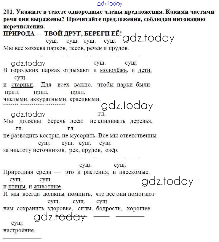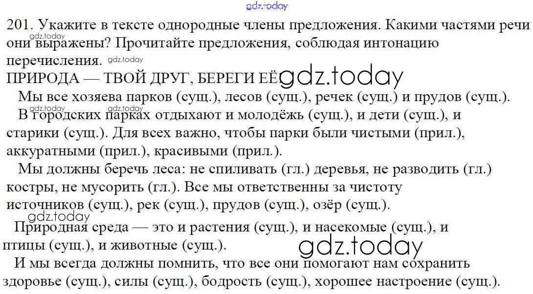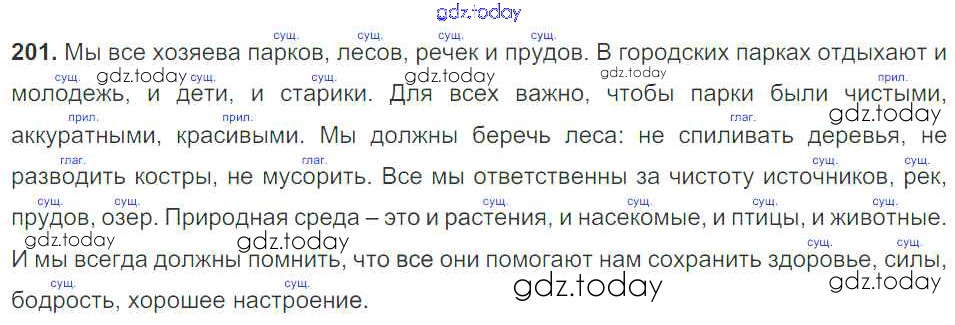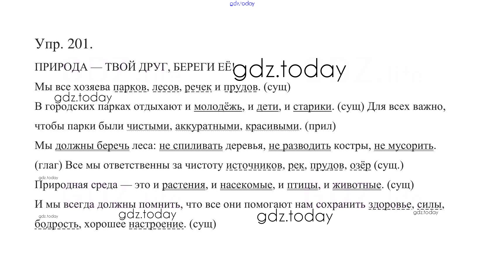 На страницах сайта gdz.today вы найдете учебный и вспомогательный материал, направленный на улучшения знаний школьной программы. ГДЗ - онлайн мир знаний Часть 1. Решение к упражнениям 201 Учебнику по Русскому языку для 5 класса Баранов, Ладыженская Просвещение, Просвещение 2016, 2019