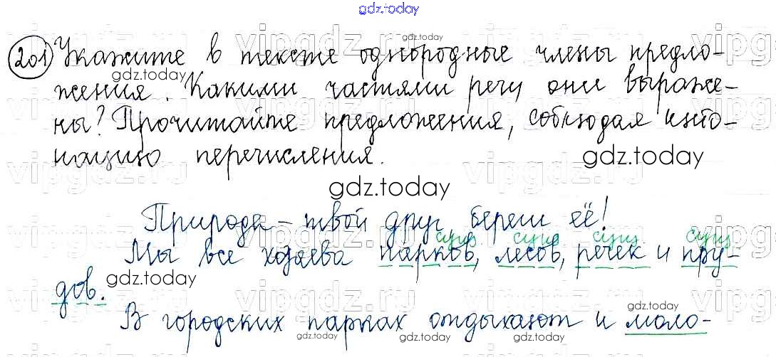 Ответы к Часть 1. Решение к упражнениям 201 Учебнику по Русскому языку для 5 класса Баранов, Ладыженская Просвещение, Просвещение 2016, 2019