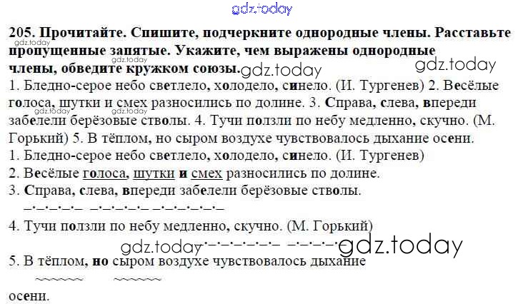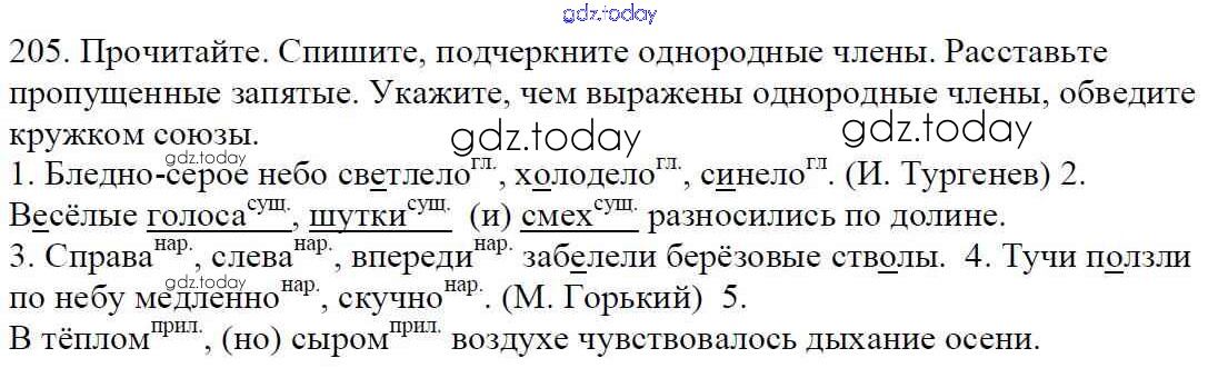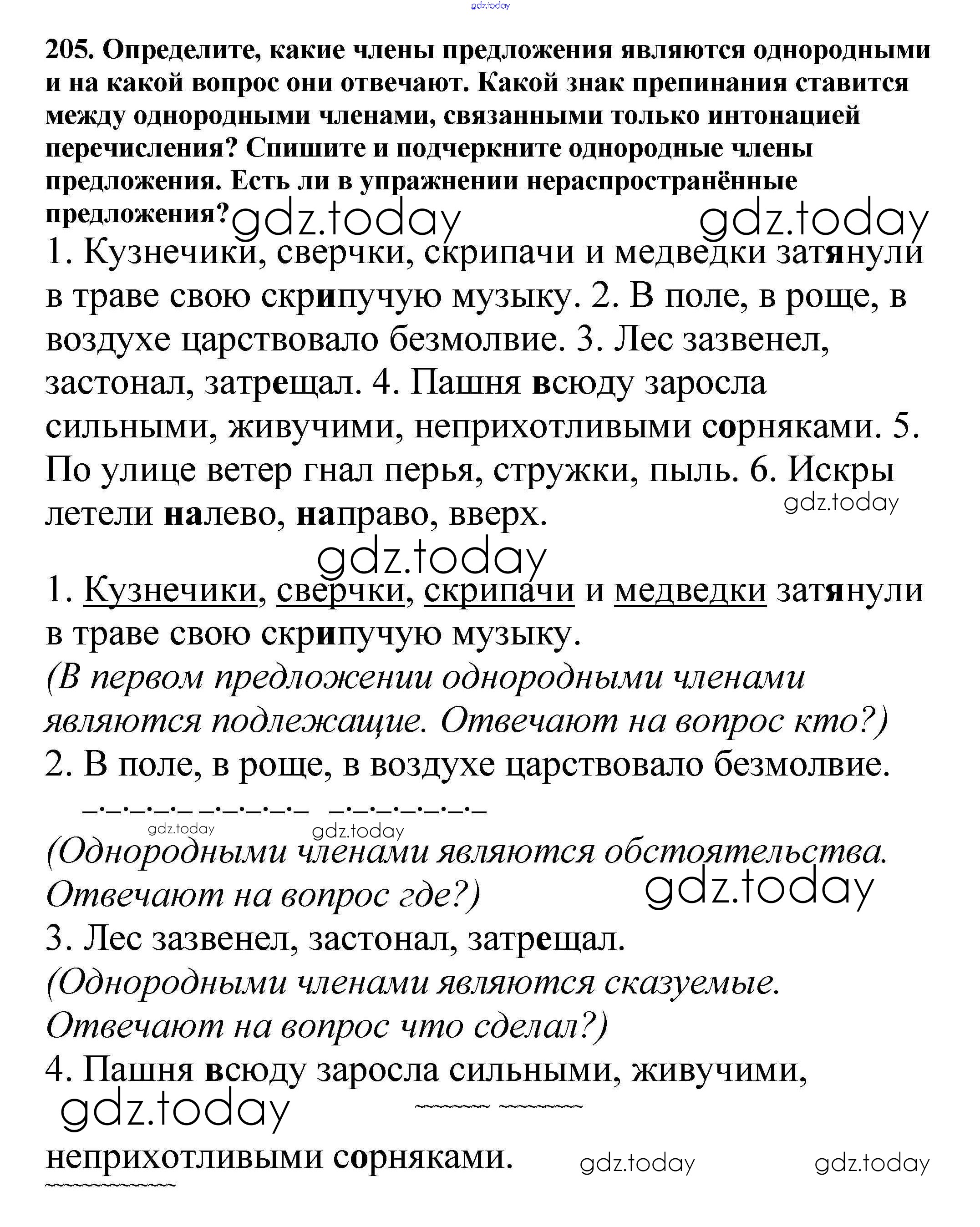 Ответы к Часть 1. Решение к упражнениям 205 Учебнику по Русскому языку для 5 класса Баранов, Ладыженская Просвещение, Просвещение 2016, 2019