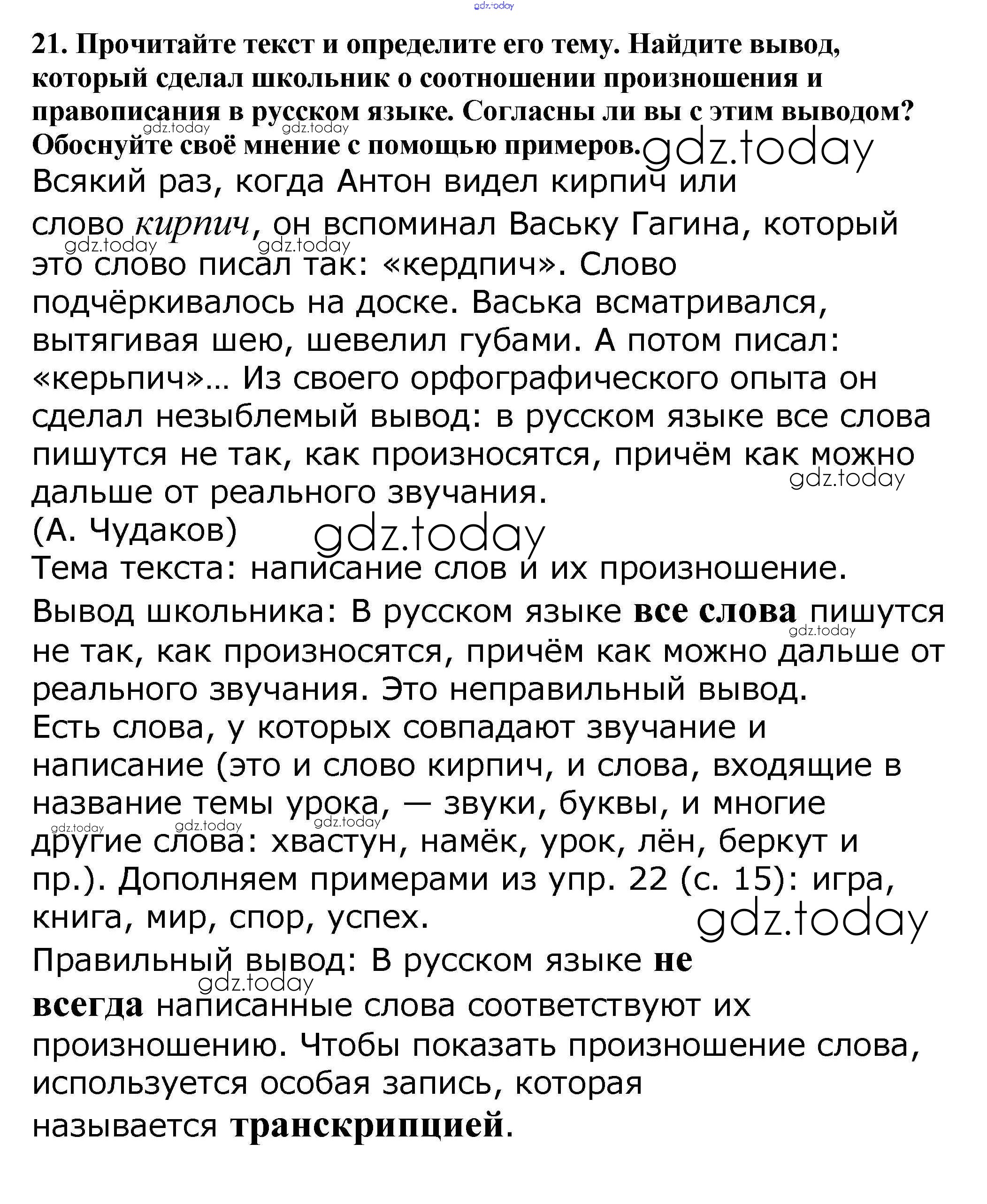 Ответы к Часть 1. Решение к упражнениям 21 Учебнику по Русскому языку для 5 класса Баранов, Ладыженская Просвещение, Просвещение 2016, 2019