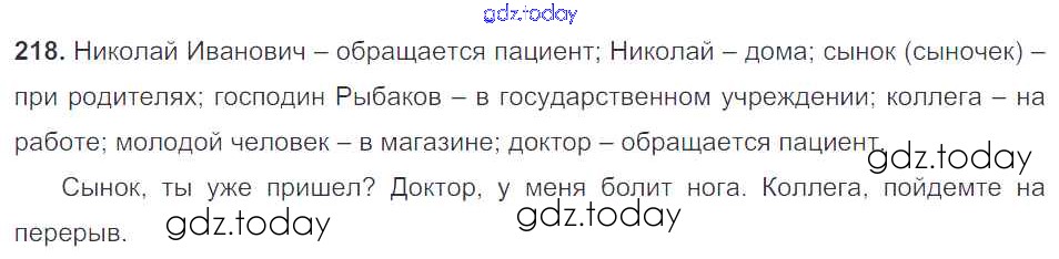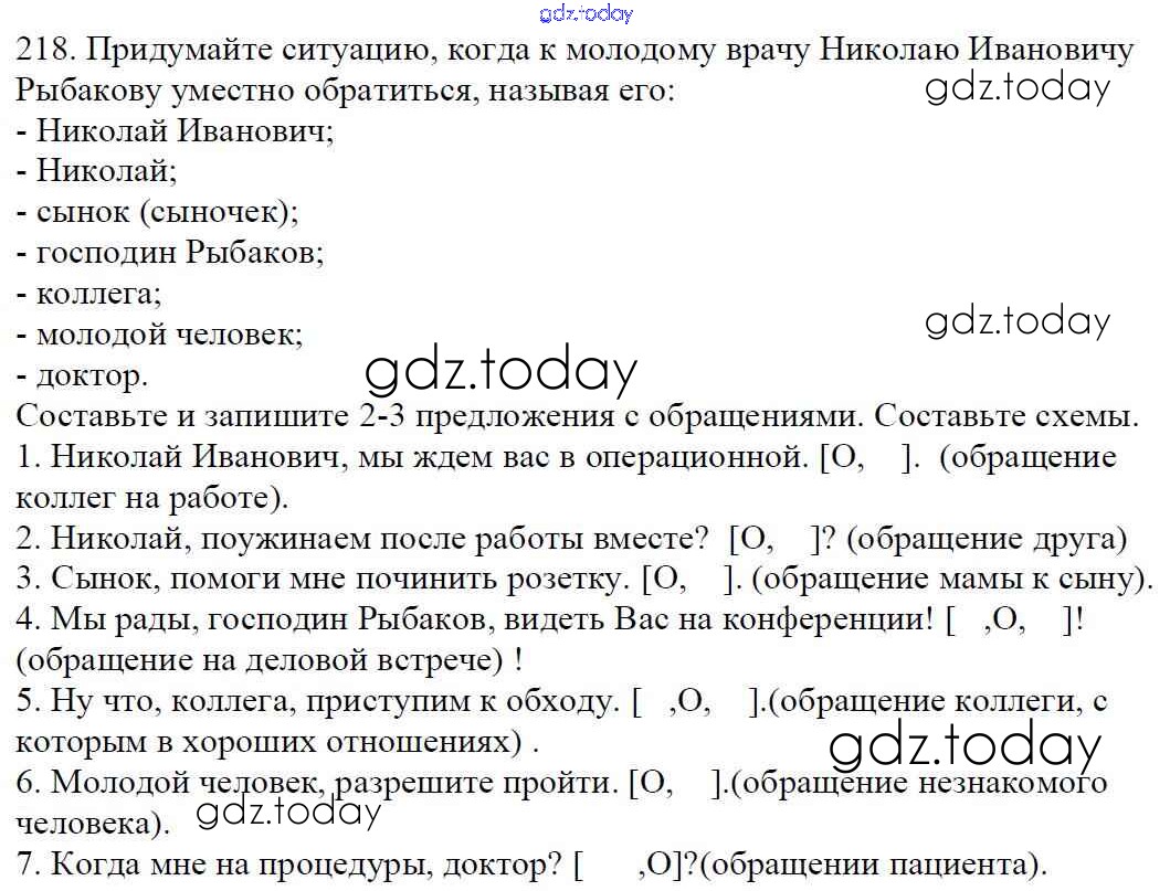 Ответы к Часть 1. Решение к упражнениям 218 Учебнику по Русскому языку для 5 класса Баранов, Ладыженская Просвещение, Просвещение 2016, 2019