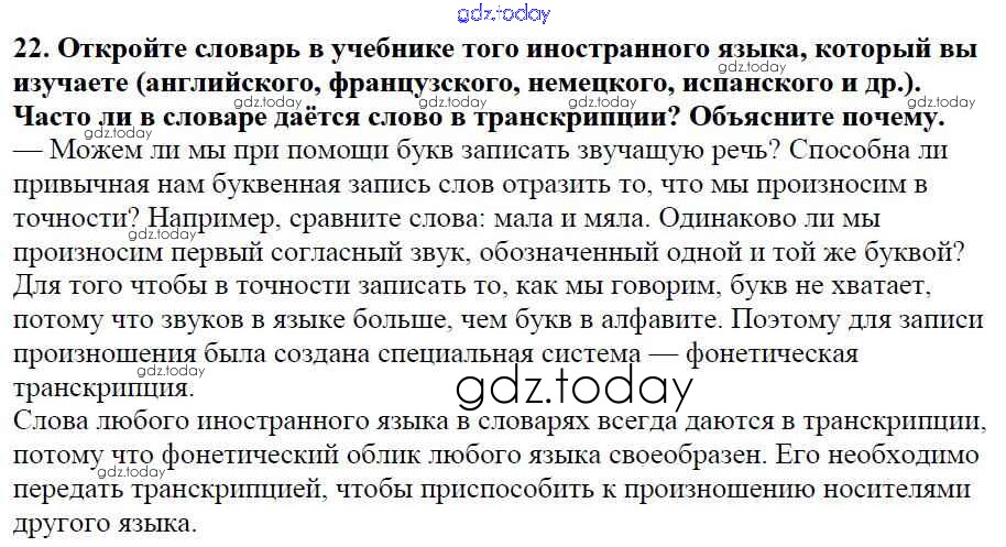 На страницах сайта gdz.today вы найдете учебный и вспомогательный материал, направленный на улучшения знаний школьной программы. ГДЗ - онлайн мир знаний Часть 1. Решение к упражнениям 22 Учебнику по Русскому языку для 5 класса Баранов, Ладыженская Просвещение, Просвещение 2016, 2019