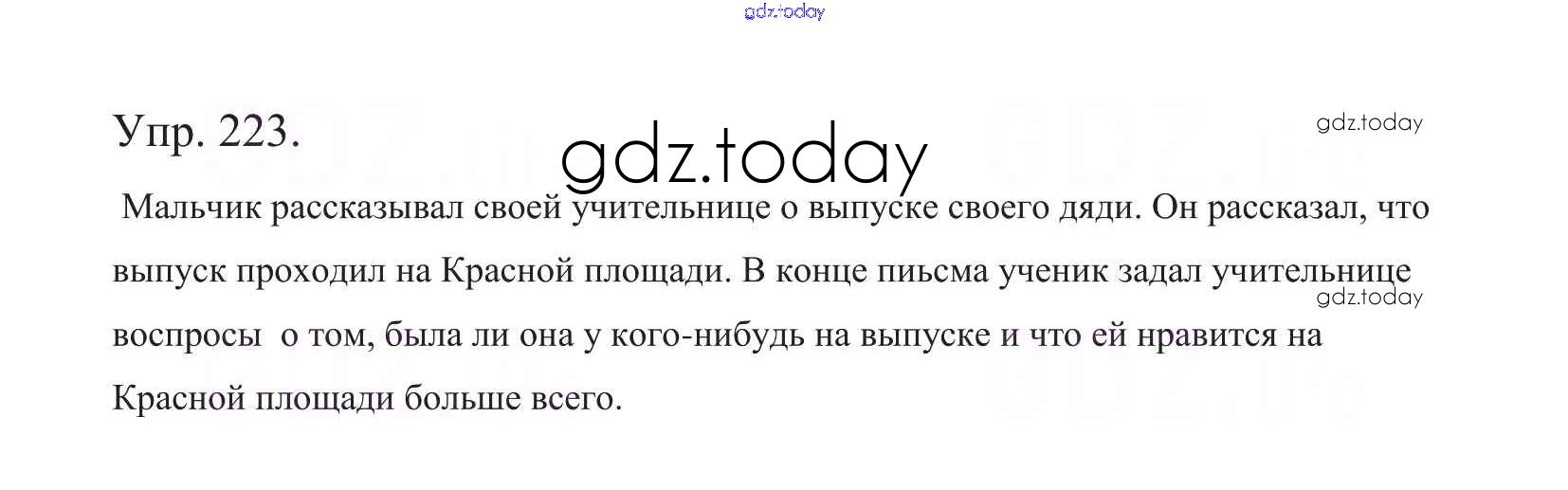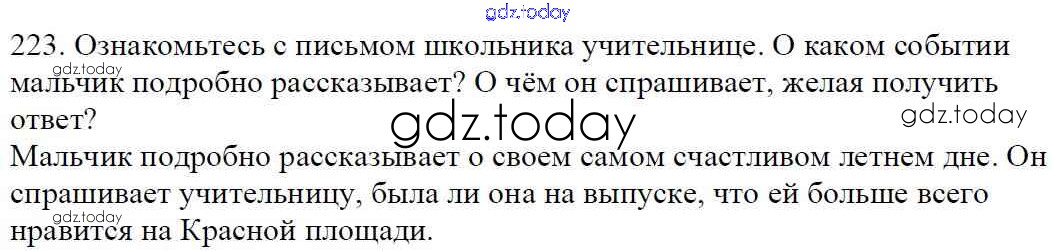 На страницах сайта gdz.today вы найдете учебный и вспомогательный материал, направленный на улучшения знаний школьной программы. ГДЗ - онлайн мир знаний Часть 1. Решение к упражнениям 223 Учебнику по Русскому языку для 5 класса Баранов, Ладыженская Просвещение, Просвещение 2016, 2019