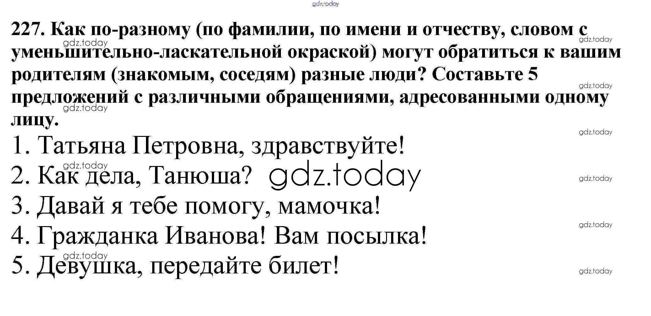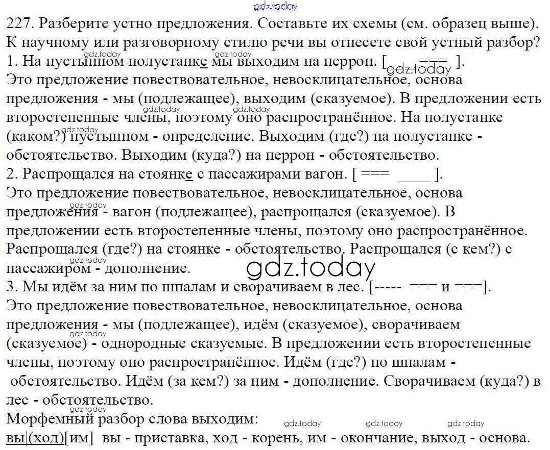 Ответы к Часть 1. Решение к упражнениям 227 Учебнику по Русскому языку для 5 класса Баранов, Ладыженская Просвещение, Просвещение 2016, 2019