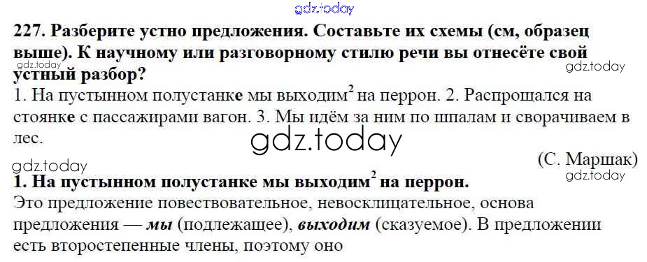 На страницах сайта gdz.today вы найдете учебный и вспомогательный материал, направленный на улучшения знаний школьной программы. ГДЗ - онлайн мир знаний Часть 1. Решение к упражнениям 227 Учебнику по Русскому языку для 5 класса Баранов, Ладыженская Просвещение, Просвещение 2016, 2019