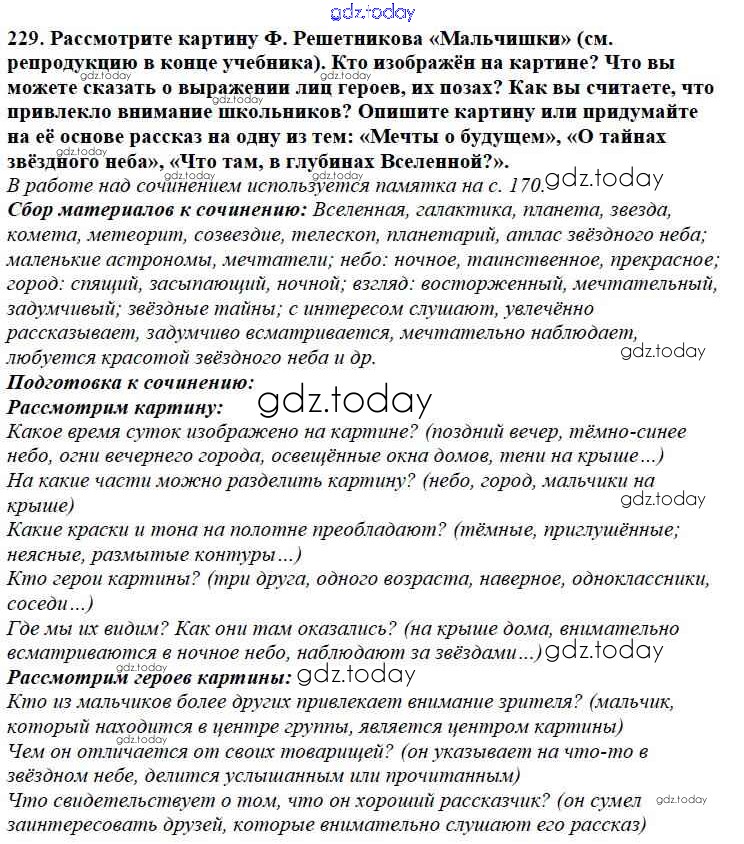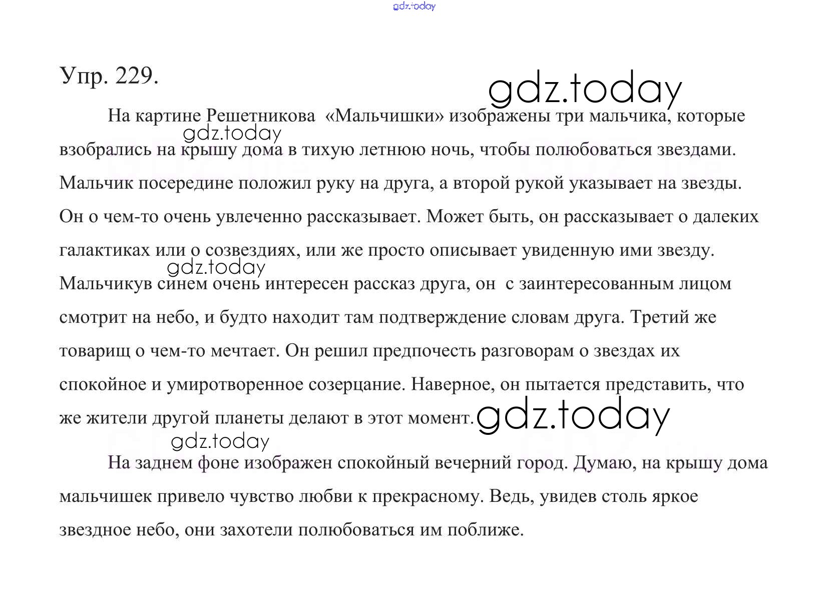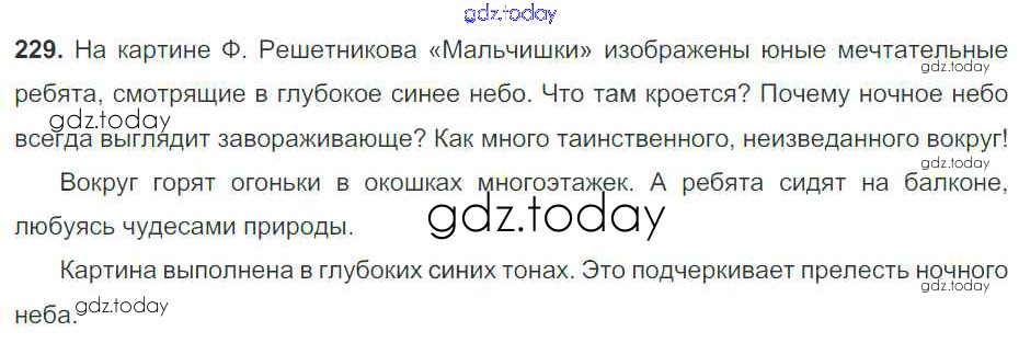На страницах сайта gdz.today вы найдете учебный и вспомогательный материал, направленный на улучшения знаний школьной программы. ГДЗ - онлайн мир знаний Часть 1. Решение к упражнениям 229 Учебнику по Русскому языку для 5 класса Баранов, Ладыженская Просвещение, Просвещение 2016, 2019