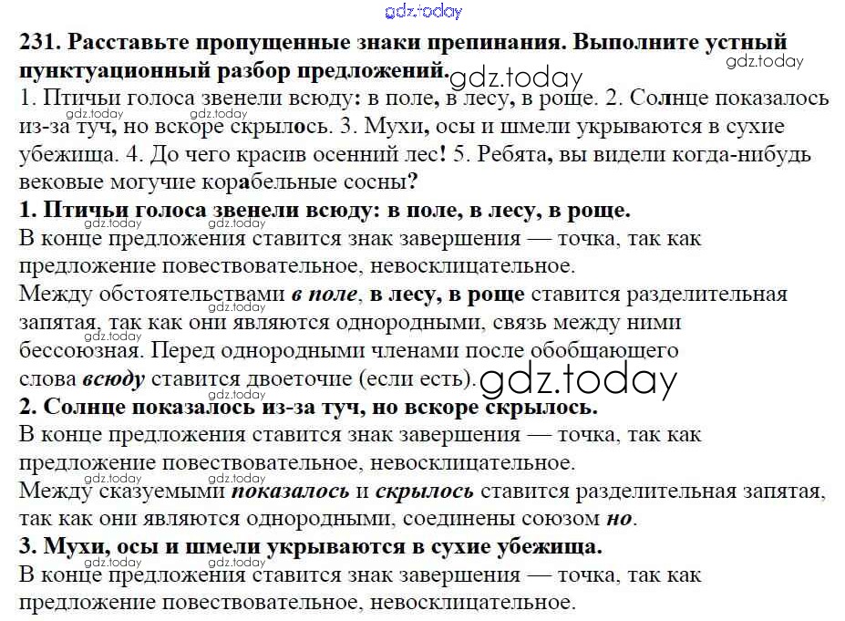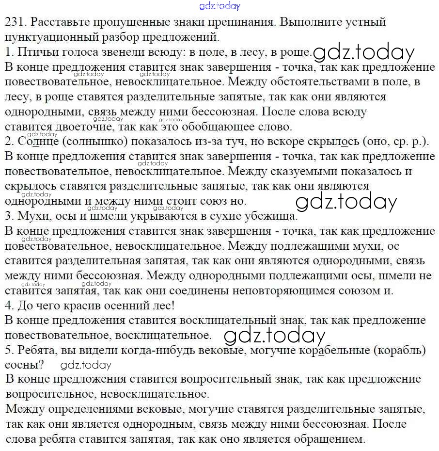 Ответы к Часть 1. Решение к упражнениям 231 Учебнику по Русскому языку для 5 класса Баранов, Ладыженская Просвещение, Просвещение 2016, 2019