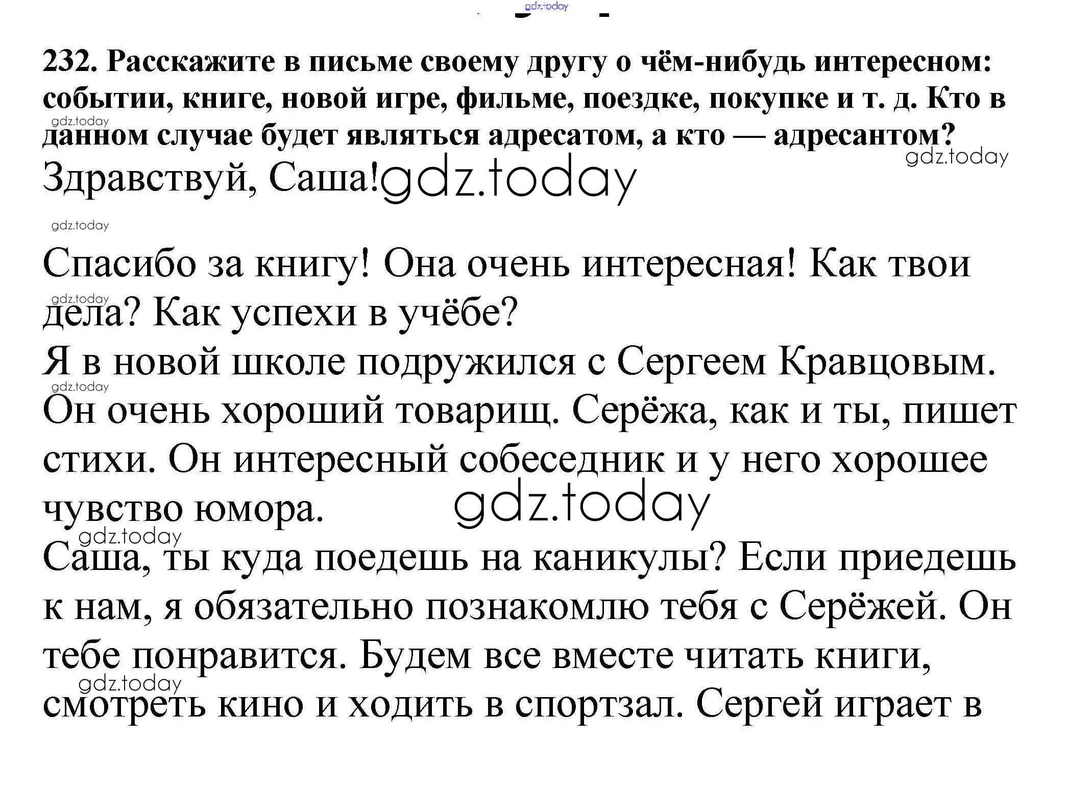 Ответы к Часть 1. Решение к упражнениям 232 Учебнику по Русскому языку для 5 класса Баранов, Ладыженская Просвещение, Просвещение 2016, 2019