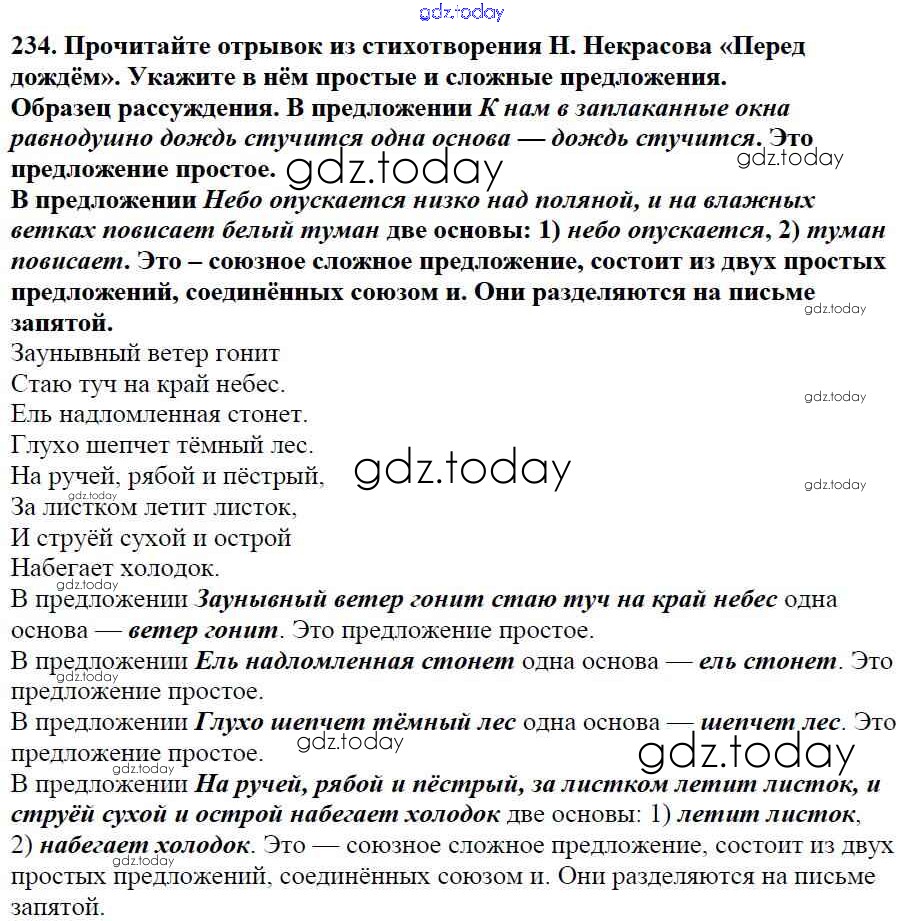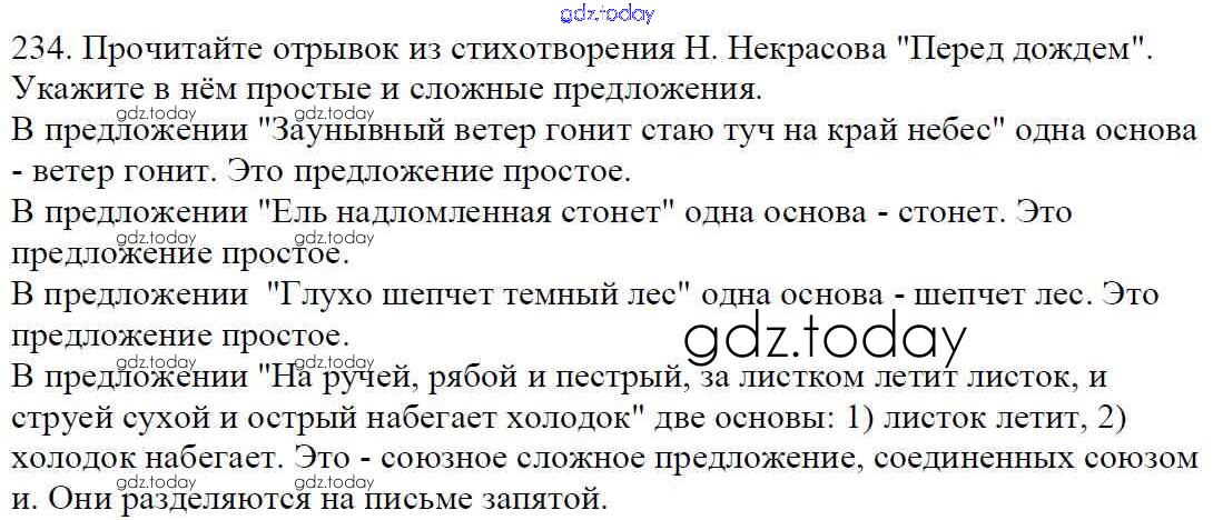Ответы к Часть 1. Решение к упражнениям 234 Учебнику по Русскому языку для 5 класса Баранов, Ладыженская Просвещение, Просвещение 2016, 2019