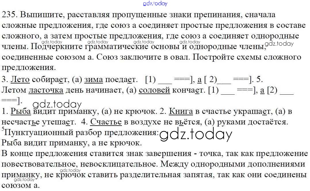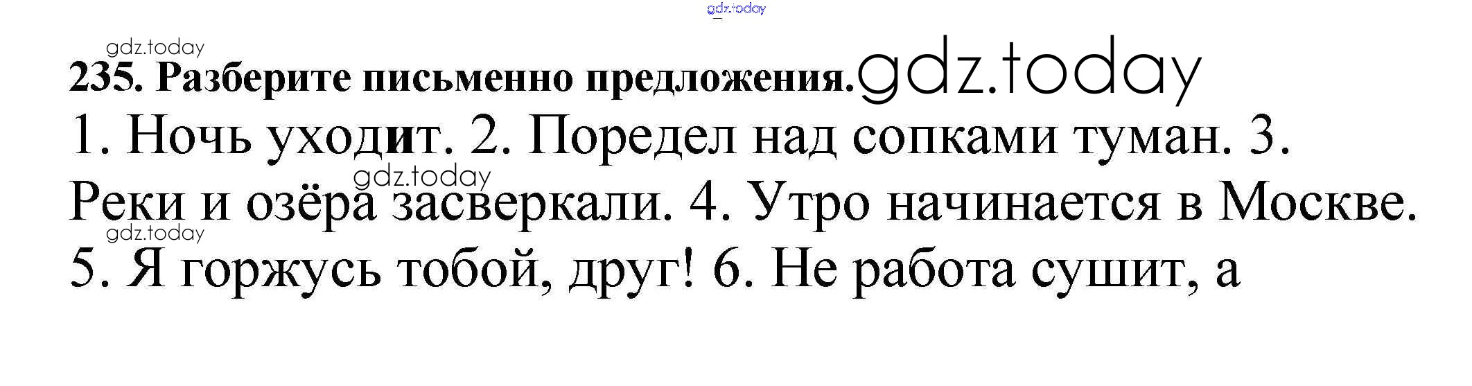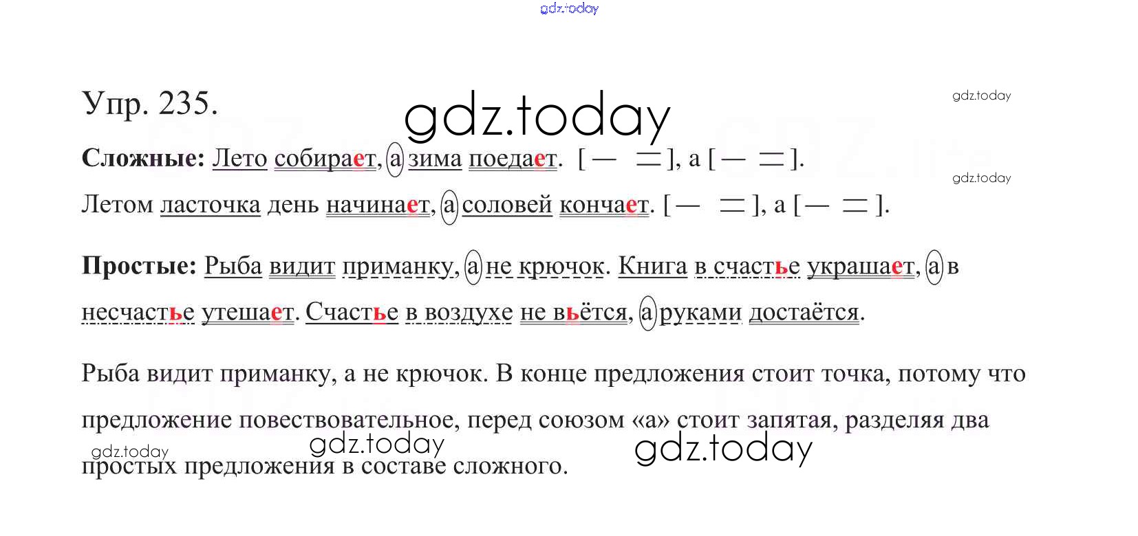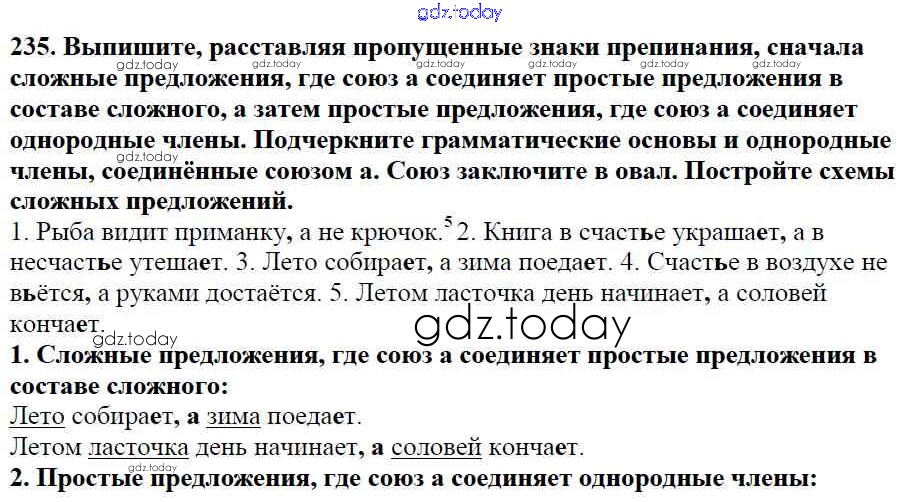 На страницах сайта gdz.today вы найдете учебный и вспомогательный материал, направленный на улучшения знаний школьной программы. ГДЗ - онлайн мир знаний Часть 1. Решение к упражнениям 235 Учебнику по Русскому языку для 5 класса Баранов, Ладыженская Просвещение, Просвещение 2016, 2019