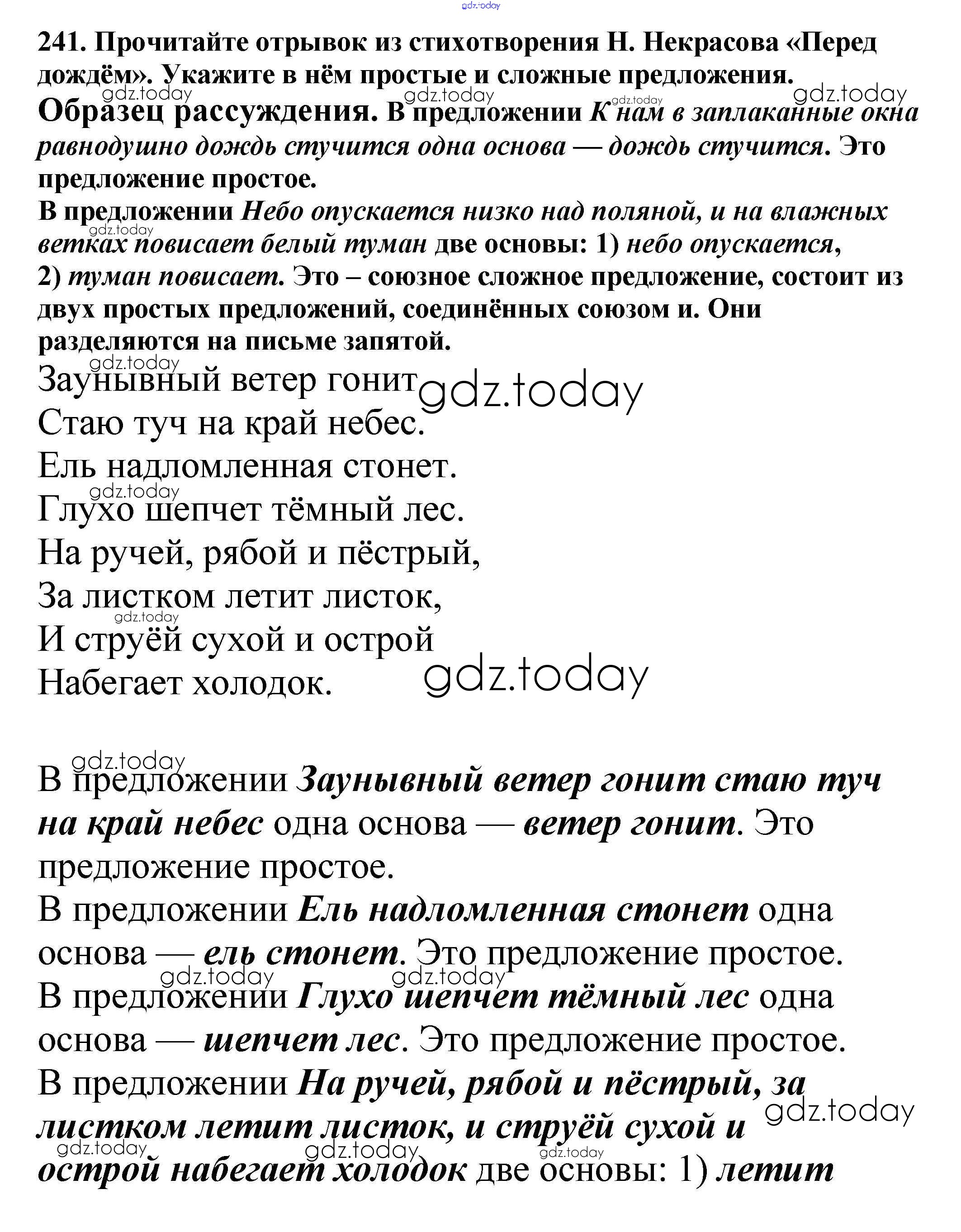 Ответы к Часть 1. Решение к упражнениям 241 Учебнику по Русскому языку для 5 класса Баранов, Ладыженская Просвещение, Просвещение 2016, 2019