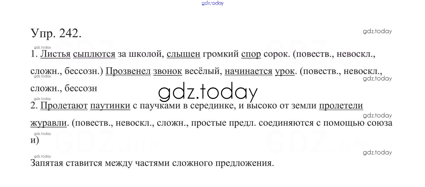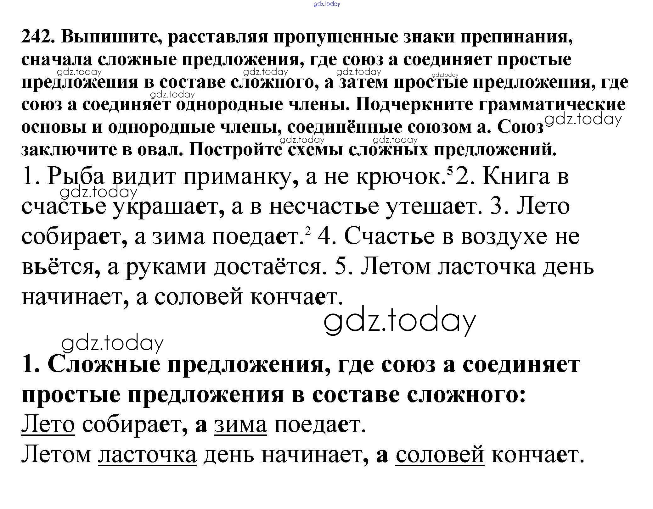 На страницах сайта gdz.today вы найдете учебный и вспомогательный материал, направленный на улучшения знаний школьной программы. ГДЗ - онлайн мир знаний Часть 1. Решение к упражнениям 242 Учебнику по Русскому языку для 5 класса Баранов, Ладыженская Просвещение, Просвещение 2016, 2019