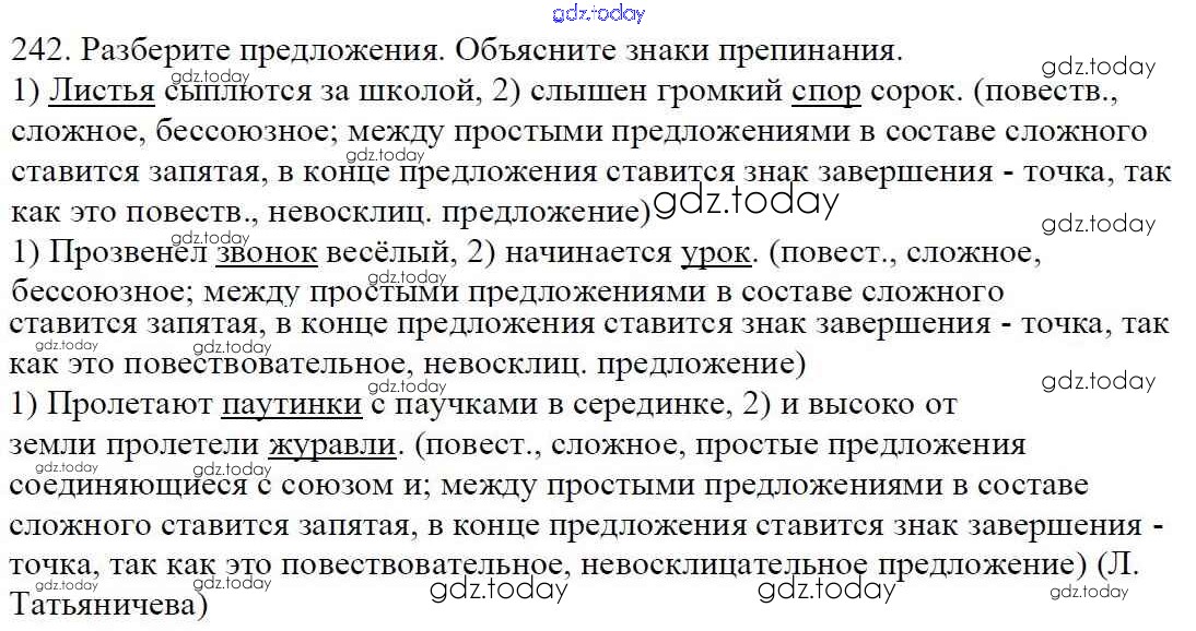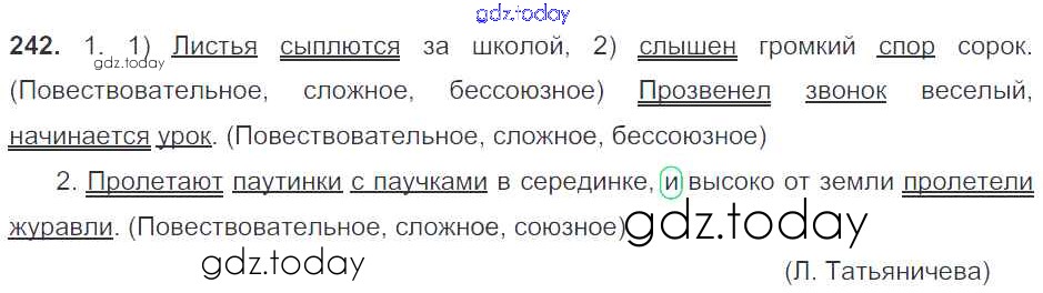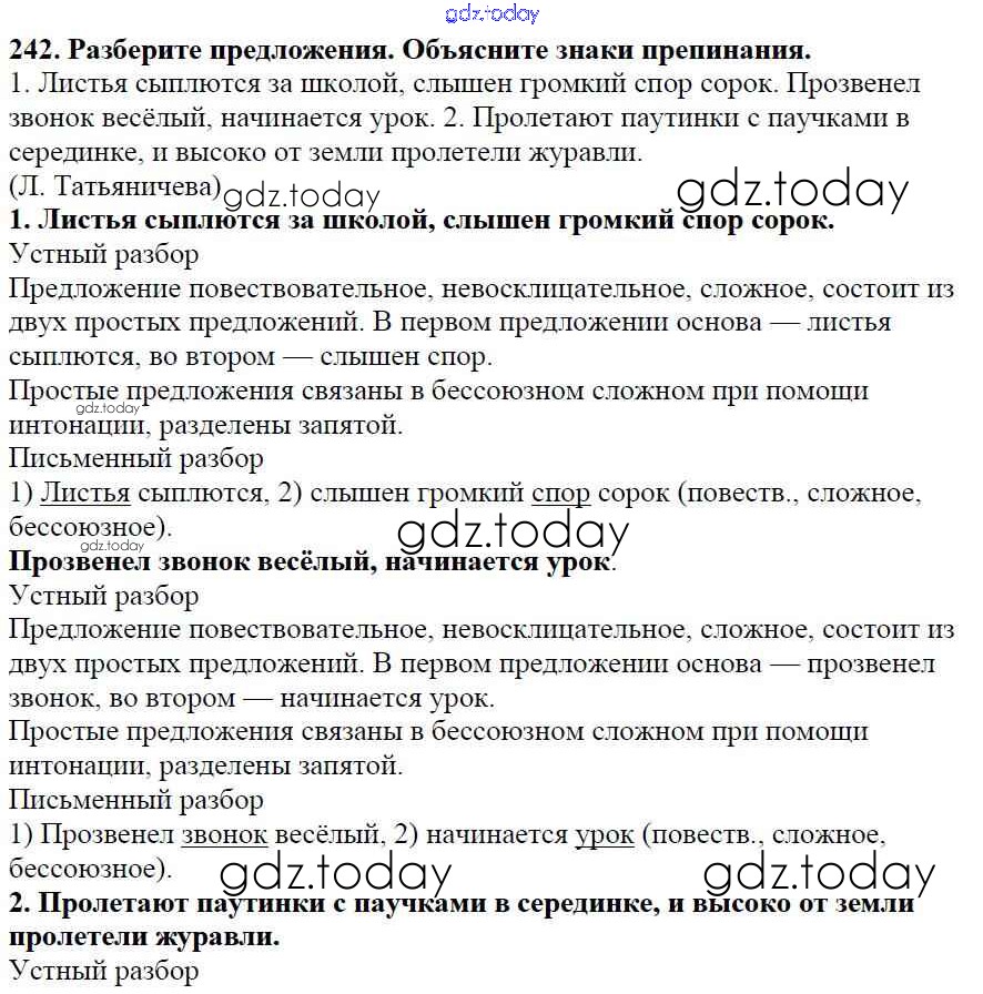 Ответы к Часть 1. Решение к упражнениям 242 Учебнику по Русскому языку для 5 класса Баранов, Ладыженская Просвещение, Просвещение 2016, 2019