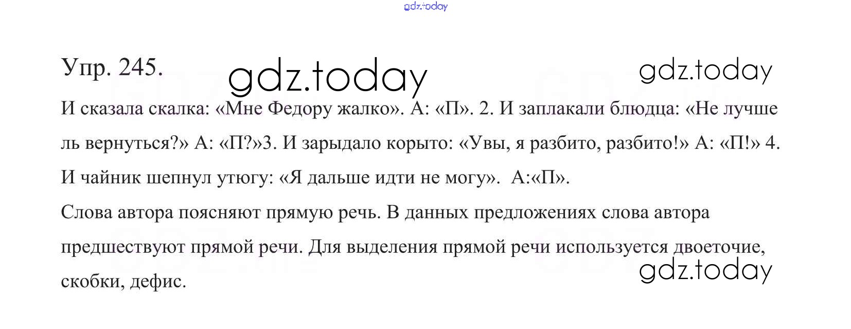 На страницах сайта gdz.today вы найдете учебный и вспомогательный материал, направленный на улучшения знаний школьной программы. ГДЗ - онлайн мир знаний Часть 1. Решение к упражнениям 245 Учебнику по Русскому языку для 5 класса Баранов, Ладыженская Просвещение, Просвещение 2016, 2019