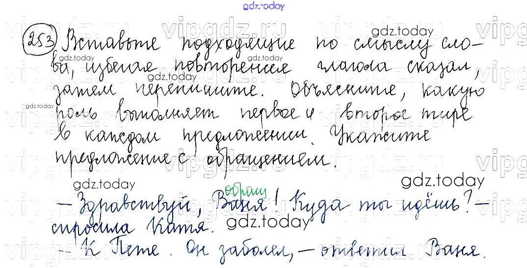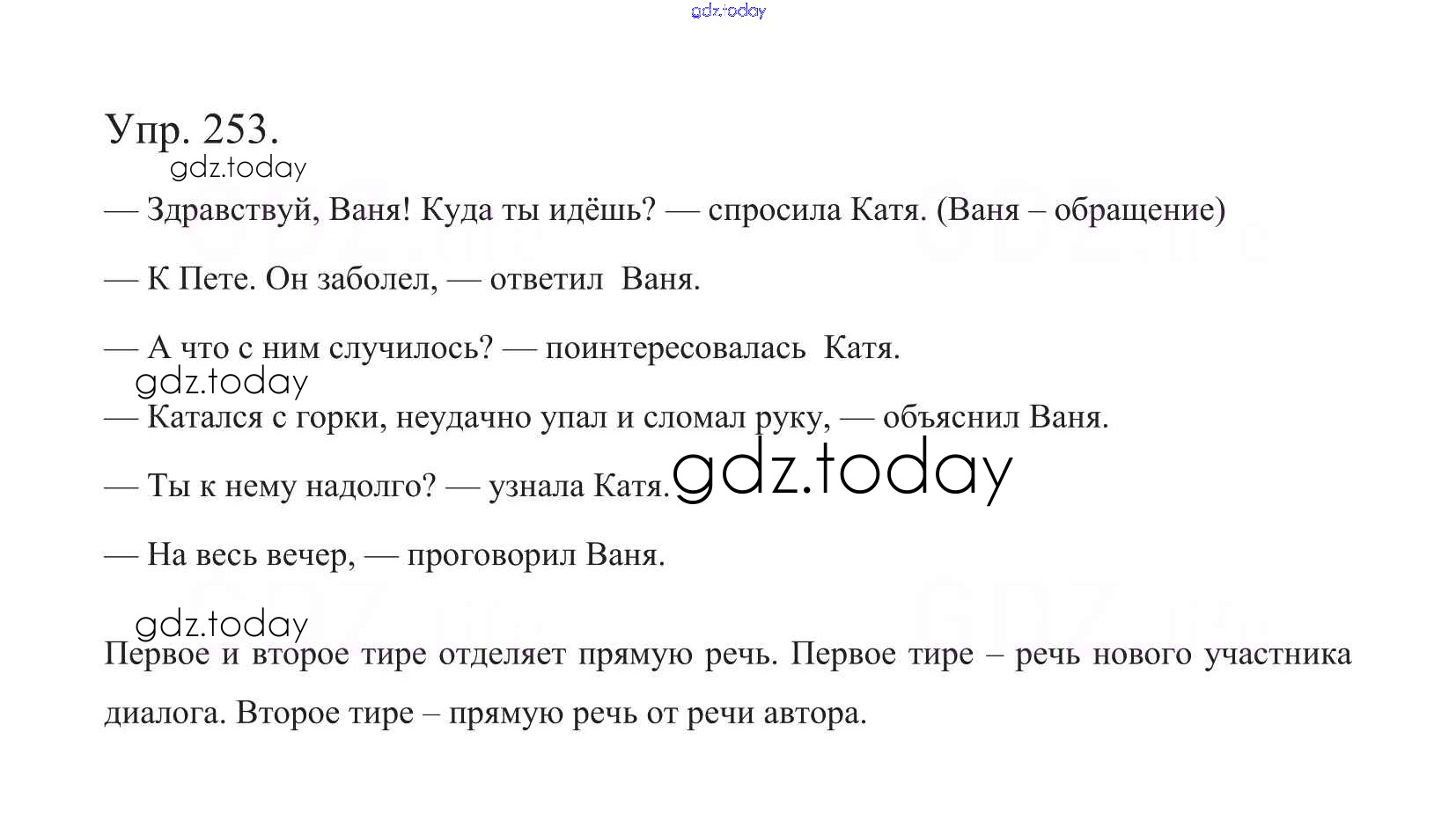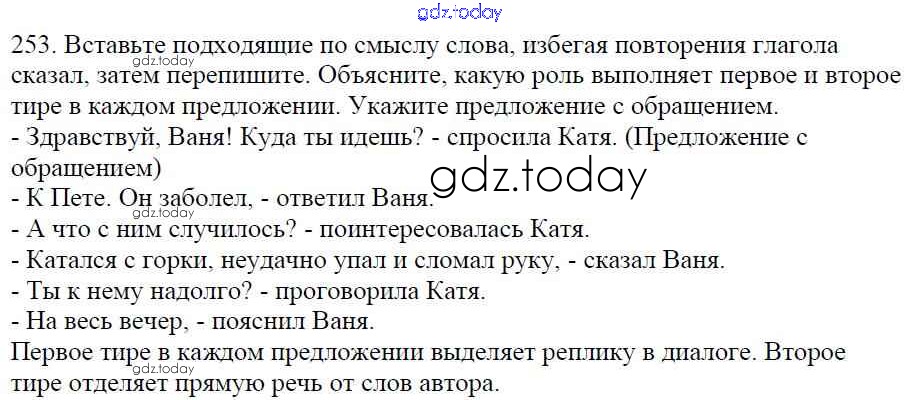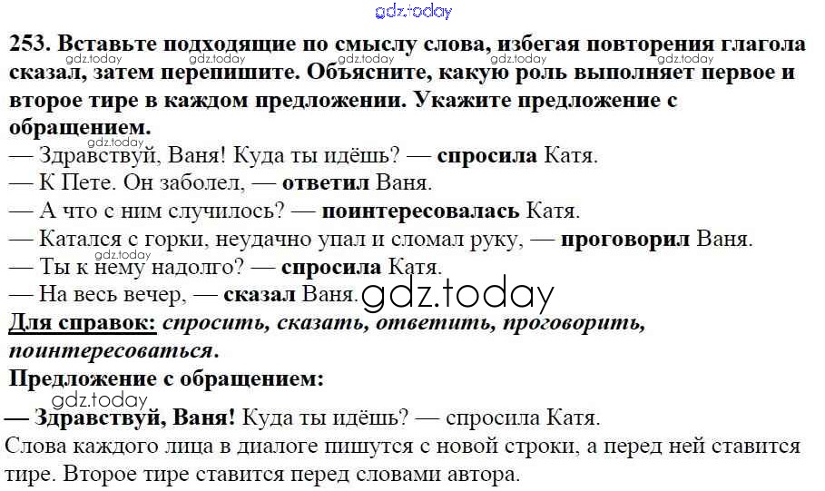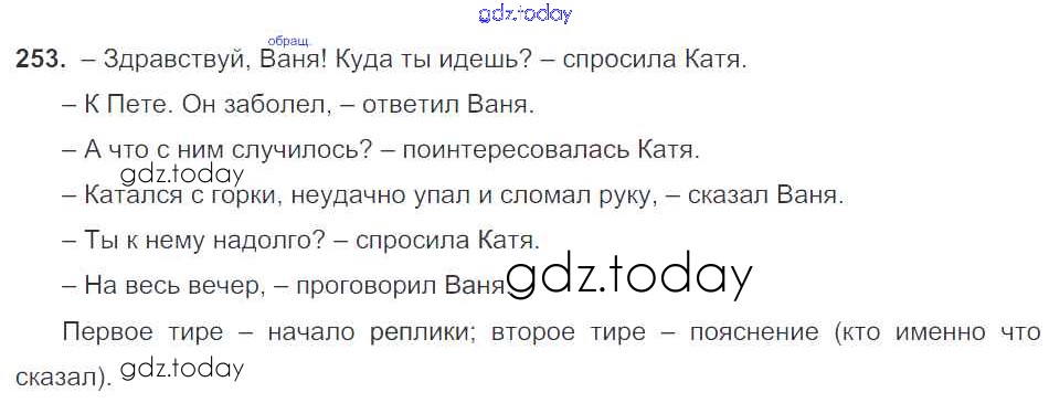 На страницах сайта gdz.today вы найдете учебный и вспомогательный материал, направленный на улучшения знаний школьной программы. ГДЗ - онлайн мир знаний Часть 1. Решение к упражнениям 253 Учебнику по Русскому языку для 5 класса Баранов, Ладыженская Просвещение, Просвещение 2016, 2019