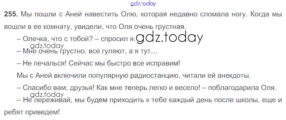 На страницах сайта gdz.today вы найдете учебный и вспомогательный материал, направленный на улучшения знаний школьной программы. ГДЗ - онлайн мир знаний Часть 1. Решение к упражнениям 255 Учебнику по Русскому языку для 5 класса Баранов, Ладыженская Просвещение, Просвещение 2016, 2019