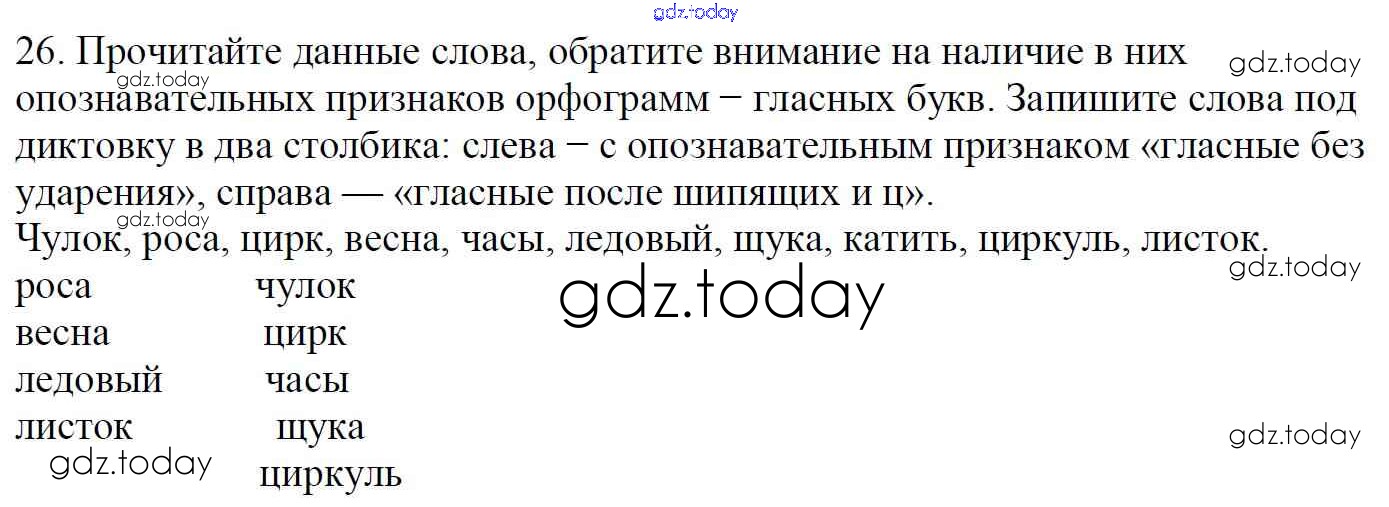 На страницах сайта gdz.today вы найдете учебный и вспомогательный материал, направленный на улучшения знаний школьной программы. ГДЗ - онлайн мир знаний Часть 1. Решение к упражнениям 26 Учебнику по Русскому языку для 5 класса Баранов, Ладыженская Просвещение, Просвещение 2016, 2019