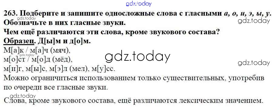 На страницах сайта gdz.today вы найдете учебный и вспомогательный материал, направленный на улучшения знаний школьной программы. ГДЗ - онлайн мир знаний Часть 1. Решение к упражнениям 263 Учебнику по Русскому языку для 5 класса Баранов, Ладыженская Просвещение, Просвещение 2016, 2019
