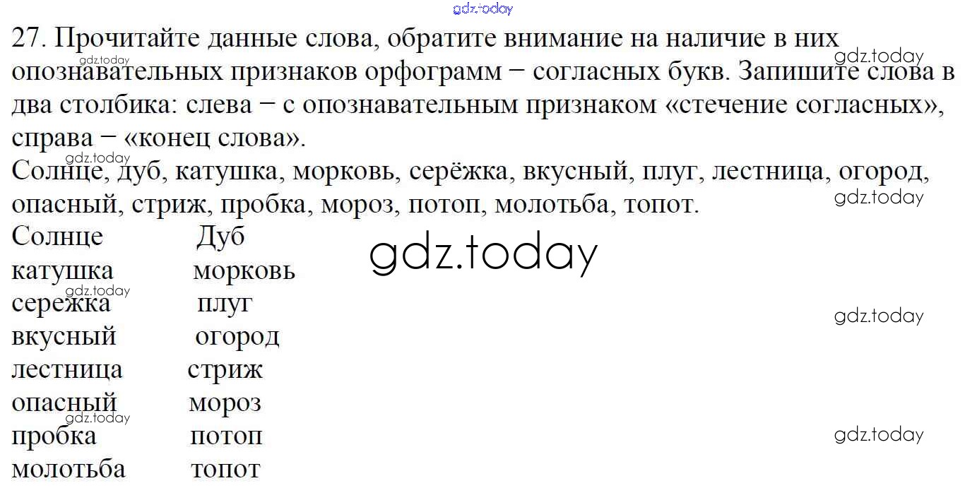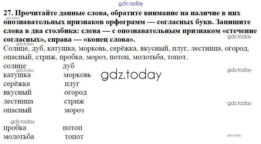 На страницах сайта gdz.today вы найдете учебный и вспомогательный материал, направленный на улучшения знаний школьной программы. ГДЗ - онлайн мир знаний Часть 1. Решение к упражнениям 27 Учебнику по Русскому языку для 5 класса Баранов, Ладыженская Просвещение, Просвещение 2016, 2019