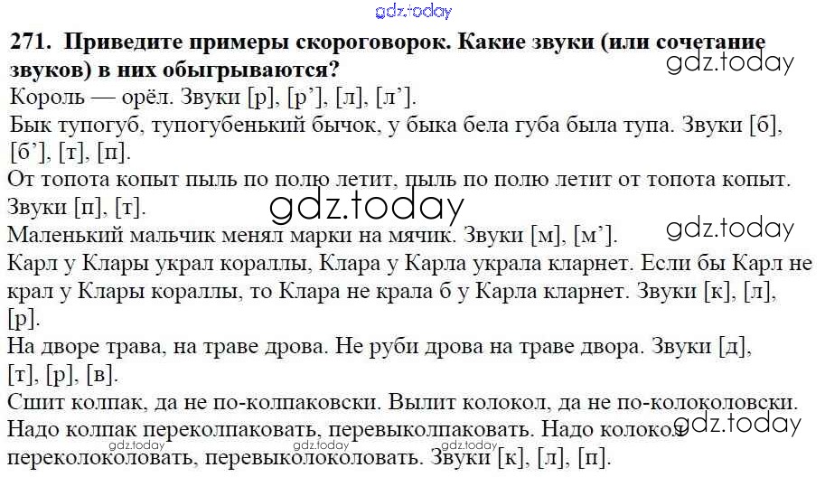 На страницах сайта gdz.today вы найдете учебный и вспомогательный материал, направленный на улучшения знаний школьной программы. ГДЗ - онлайн мир знаний Часть 1. Решение к упражнениям 271 Учебнику по Русскому языку для 5 класса Баранов, Ладыженская Просвещение, Просвещение 2016, 2019