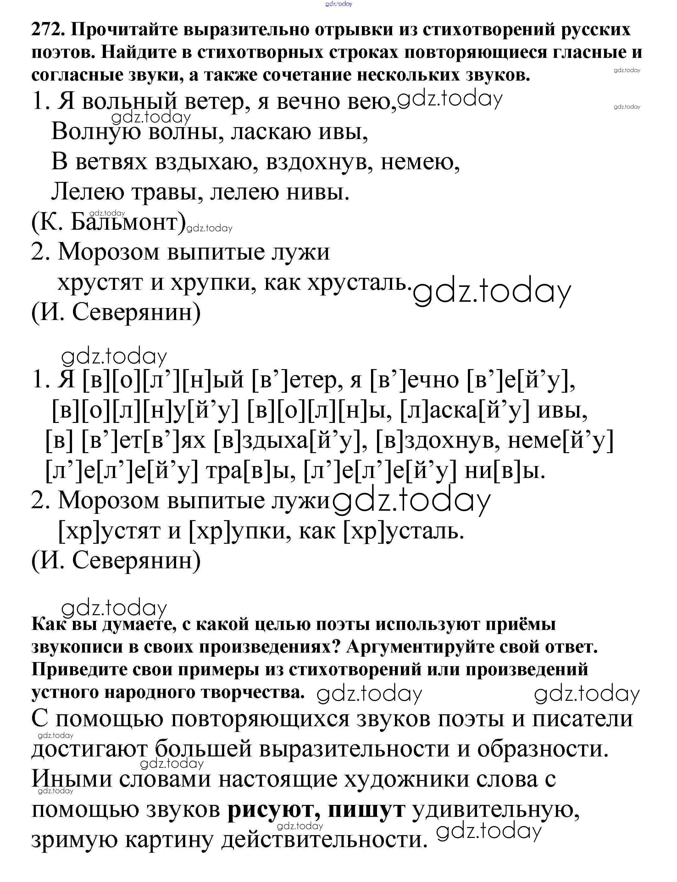 Ответы к Часть 1. Решение к упражнениям 272 Учебнику по Русскому языку для 5 класса Баранов, Ладыженская Просвещение, Просвещение 2016, 2019