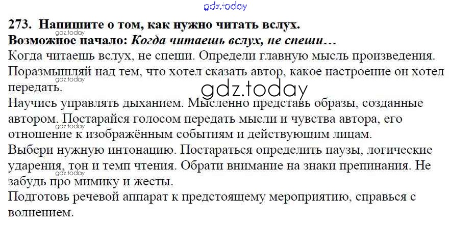 Ответы к Часть 1. Решение к упражнениям 273 Учебнику по Русскому языку для 5 класса Баранов, Ладыженская Просвещение, Просвещение 2016, 2019