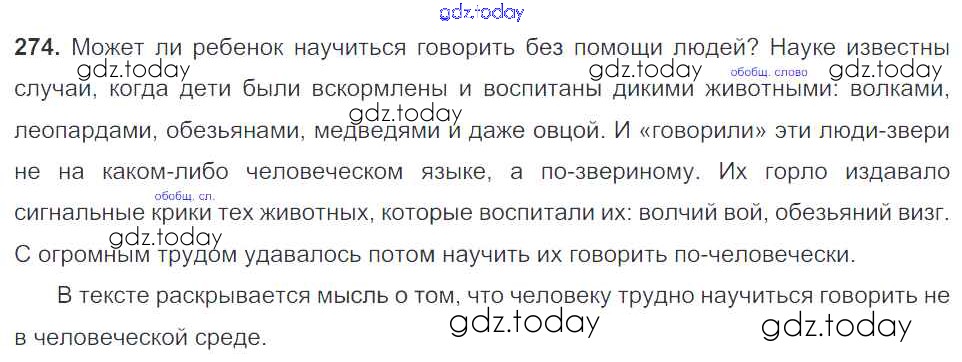 Ответы к Часть 1. Решение к упражнениям 274 Учебнику по Русскому языку для 5 класса Баранов, Ладыженская Просвещение, Просвещение 2016, 2019