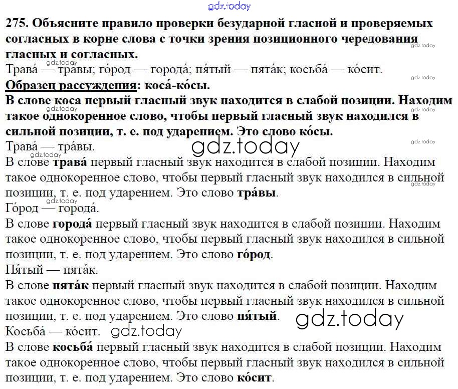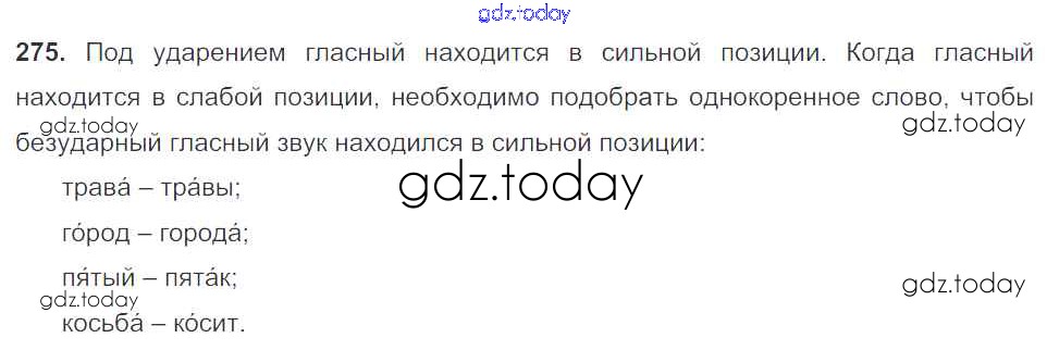 На страницах сайта gdz.today вы найдете учебный и вспомогательный материал, направленный на улучшения знаний школьной программы. ГДЗ - онлайн мир знаний Часть 1. Решение к упражнениям 275 Учебнику по Русскому языку для 5 класса Баранов, Ладыженская Просвещение, Просвещение 2016, 2019