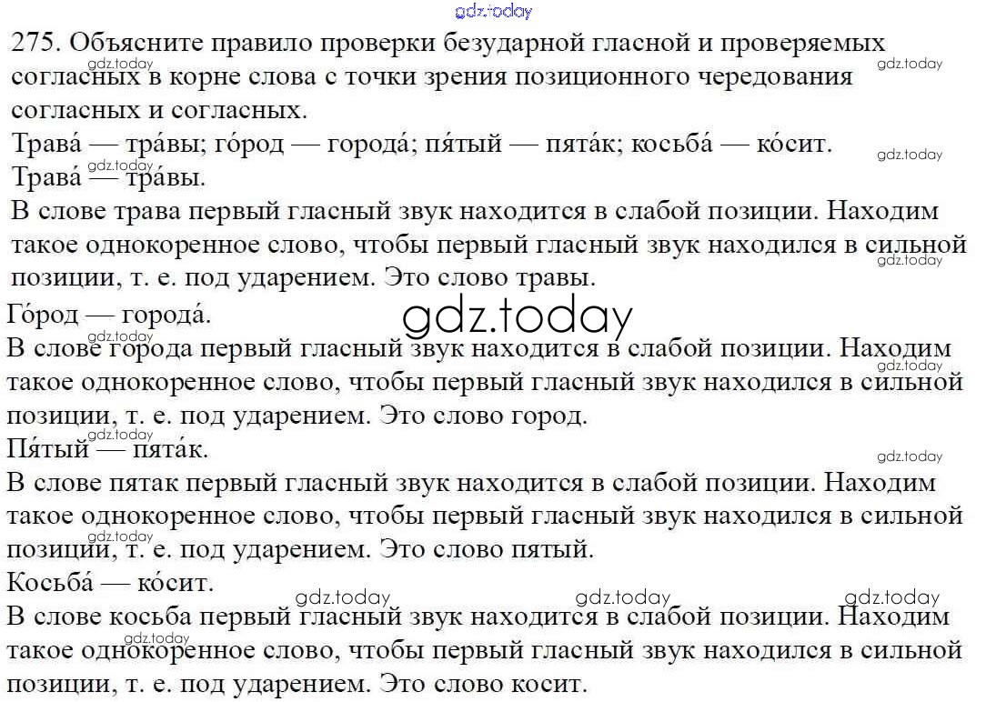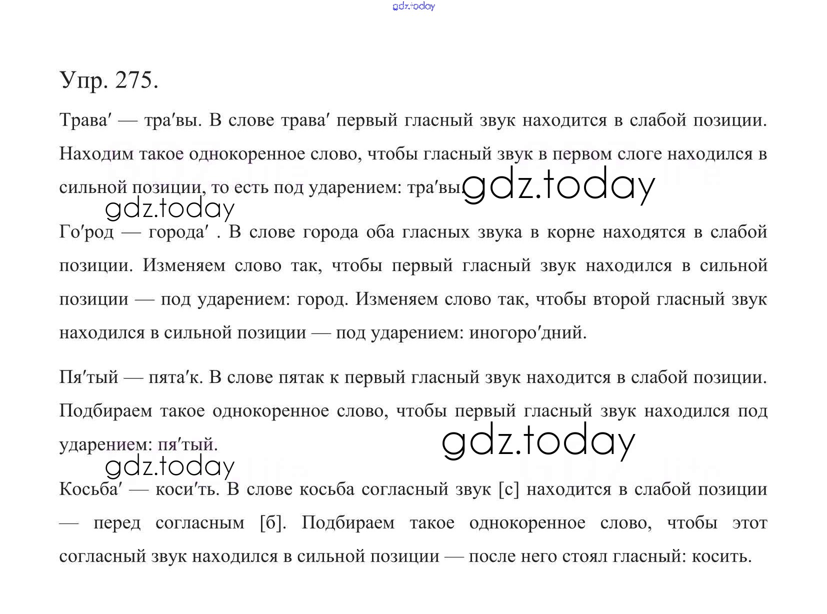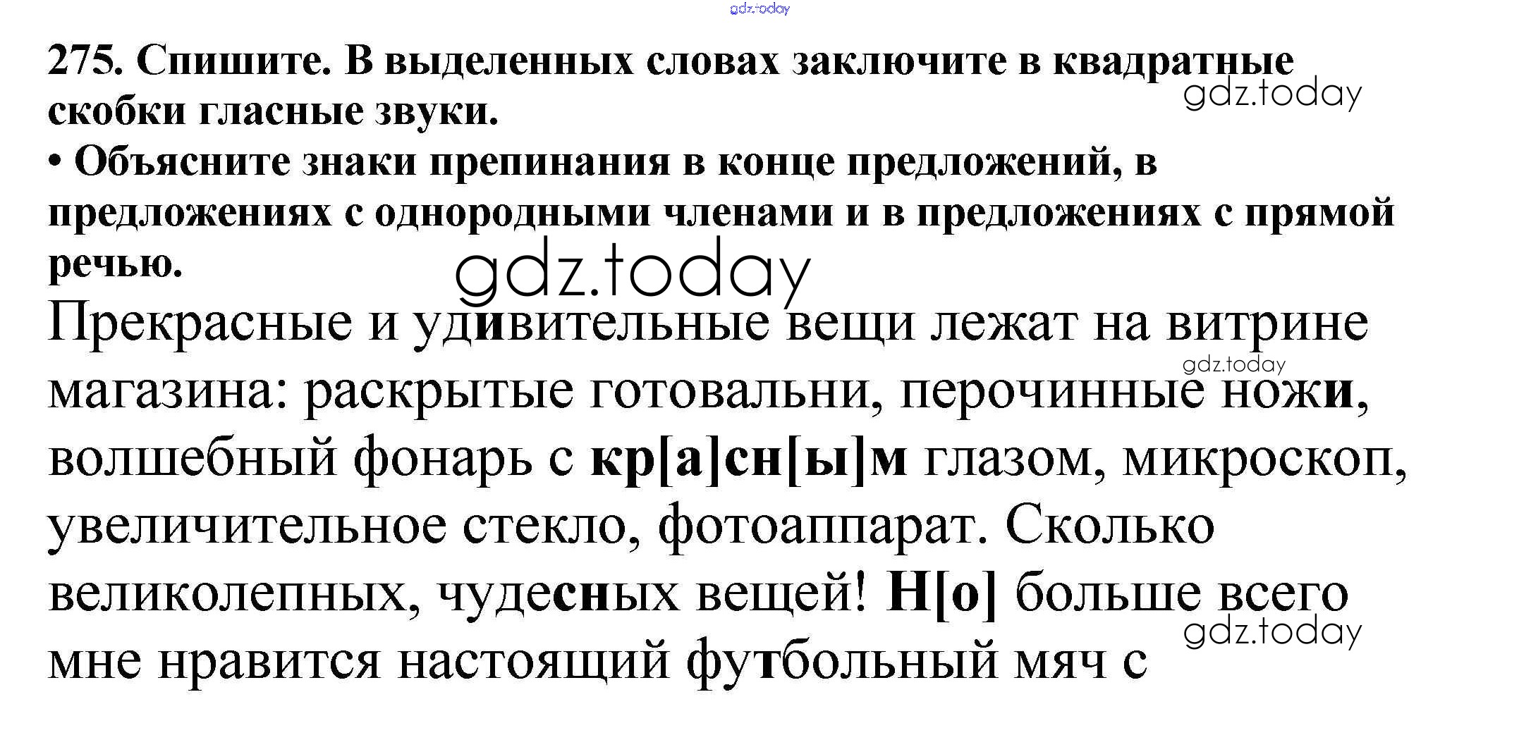 Ответы к Часть 1. Решение к упражнениям 275 Учебнику по Русскому языку для 5 класса Баранов, Ладыженская Просвещение, Просвещение 2016, 2019