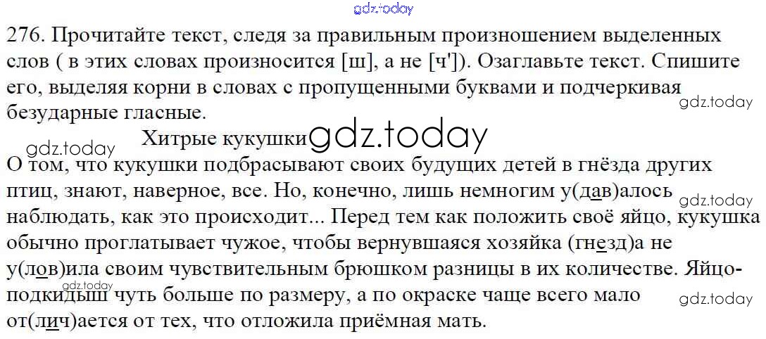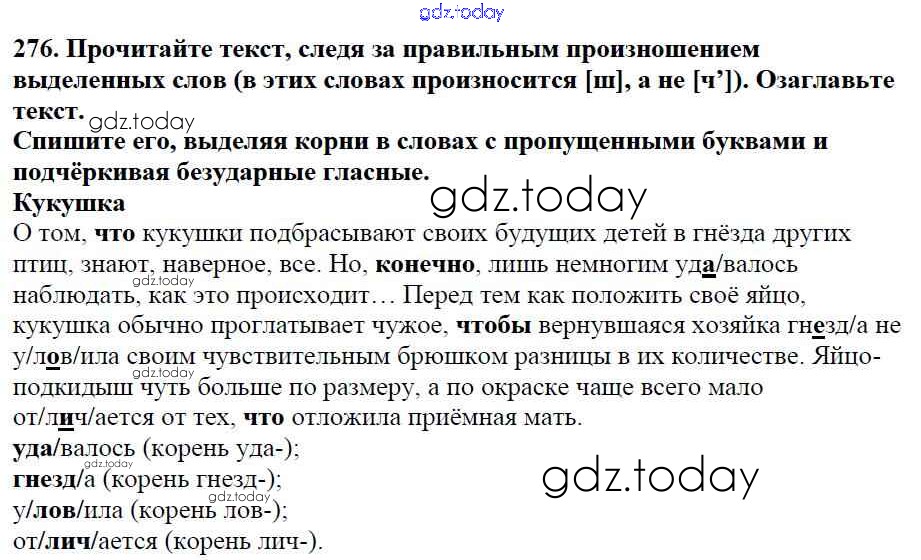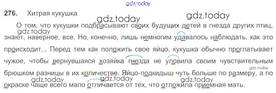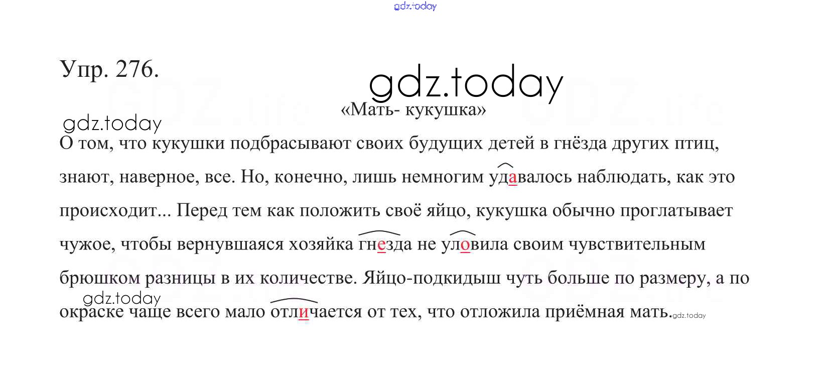 На страницах сайта gdz.today вы найдете учебный и вспомогательный материал, направленный на улучшения знаний школьной программы. ГДЗ - онлайн мир знаний Часть 1. Решение к упражнениям 276 Учебнику по Русскому языку для 5 класса Баранов, Ладыженская Просвещение, Просвещение 2016, 2019