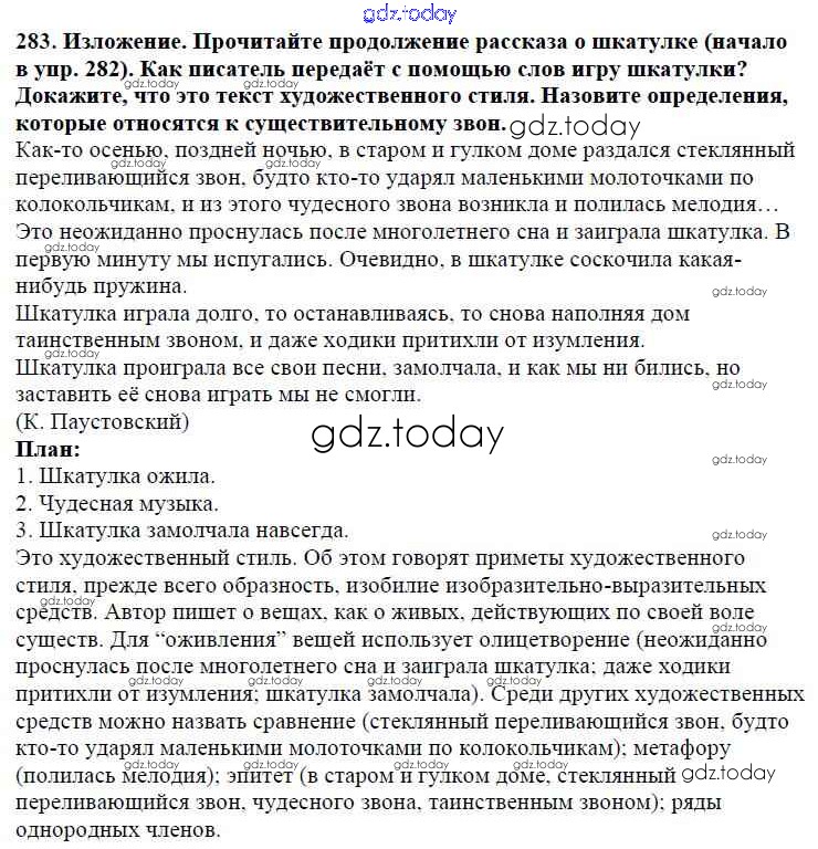 Ответы к Часть 1. Решение к упражнениям 283 Учебнику по Русскому языку для 5 класса Баранов, Ладыженская Просвещение, Просвещение 2016, 2019