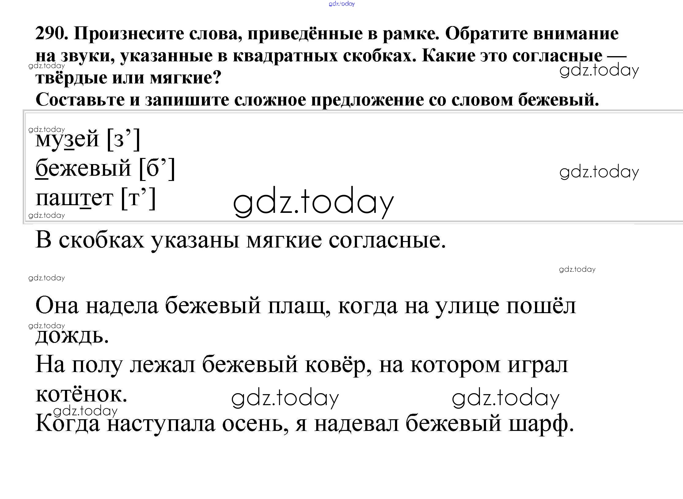 Ответы к Часть 1. Решение к упражнениям 290 Учебнику по Русскому языку для 5 класса Баранов, Ладыженская Просвещение, Просвещение 2016, 2019