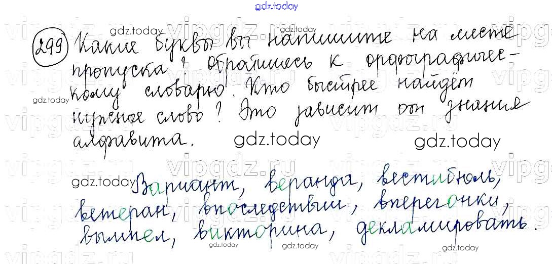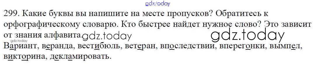 Ответы к Часть 1. Решение к упражнениям 299 Учебнику по Русскому языку для 5 класса Баранов, Ладыженская Просвещение, Просвещение 2016, 2019