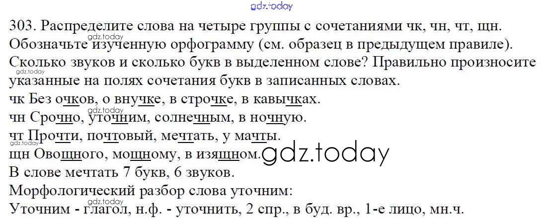 Ответы к Часть 1. Решение к упражнениям 303 Учебнику по Русскому языку для 5 класса Баранов, Ладыженская Просвещение, Просвещение 2016, 2019