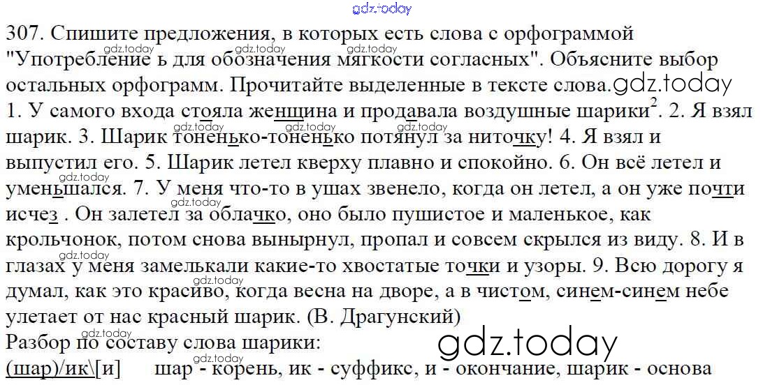На страницах сайта gdz.today вы найдете учебный и вспомогательный материал, направленный на улучшения знаний школьной программы. ГДЗ - онлайн мир знаний Часть 1. Решение к упражнениям 307 Учебнику по Русскому языку для 5 класса Баранов, Ладыженская Просвещение, Просвещение 2016, 2019