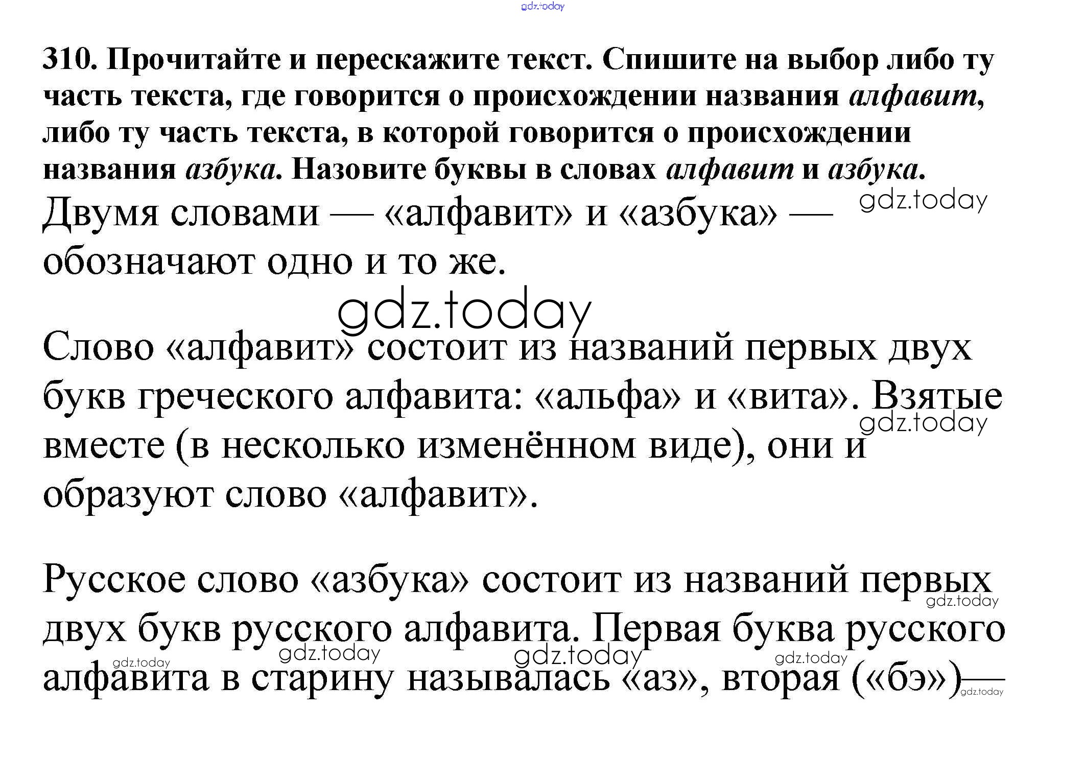 Ответы к Часть 1. Решение к упражнениям 310 Учебнику по Русскому языку для 5 класса Баранов, Ладыженская Просвещение, Просвещение 2016, 2019