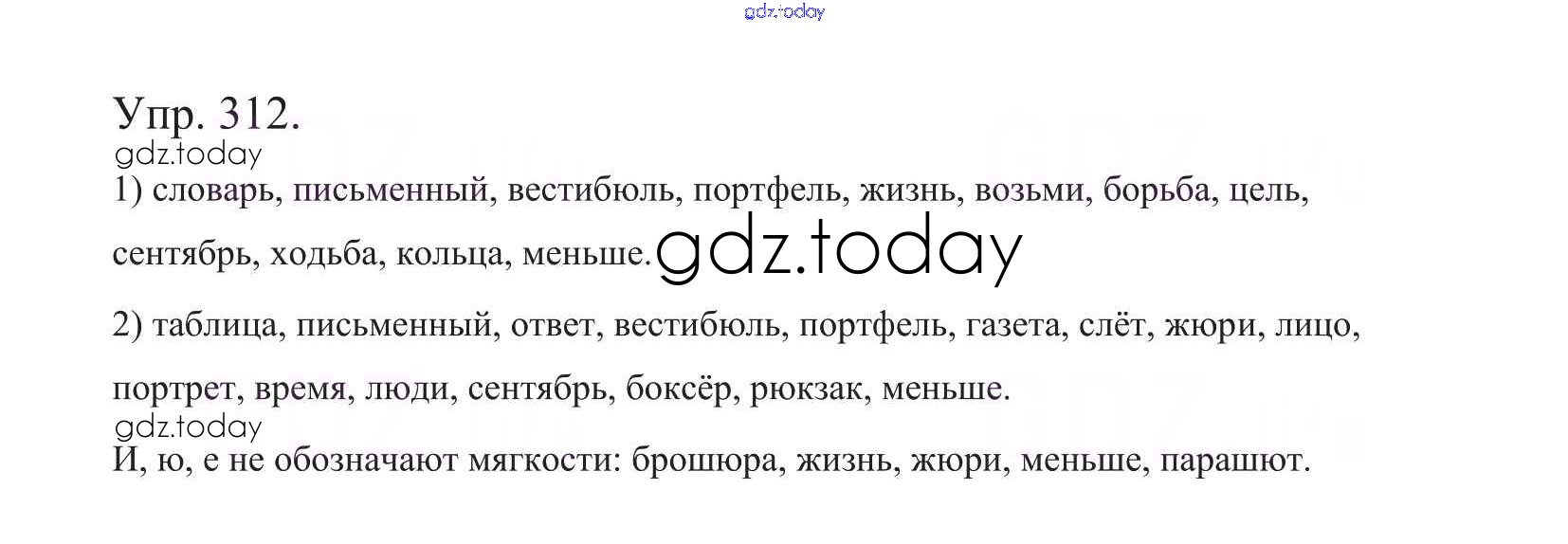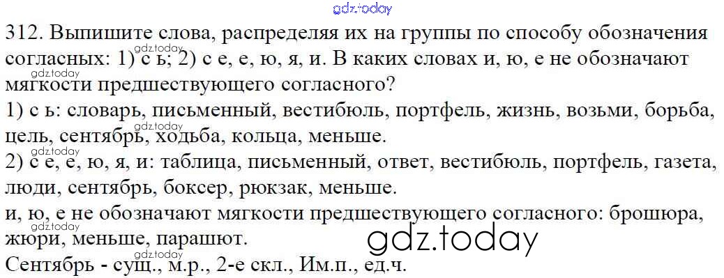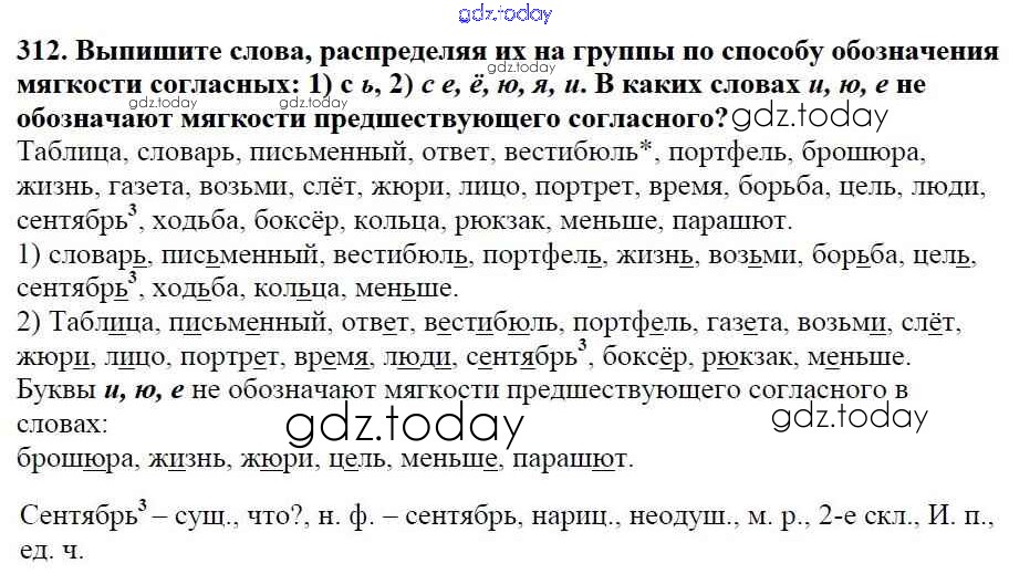 Ответы к Часть 1. Решение к упражнениям 312 Учебнику по Русскому языку для 5 класса Баранов, Ладыженская Просвещение, Просвещение 2016, 2019