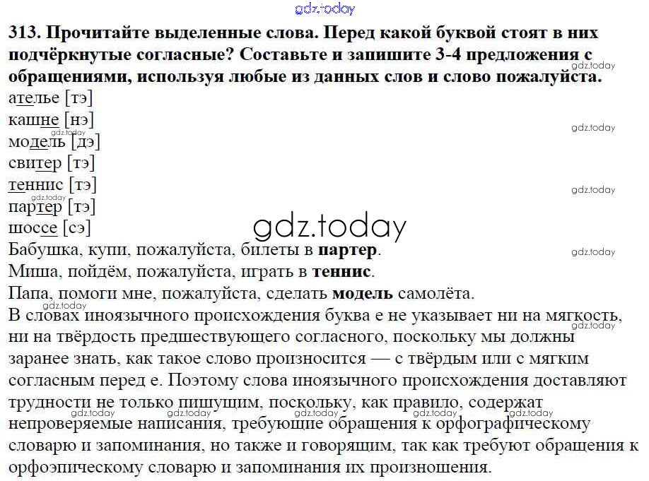 На страницах сайта gdz.today вы найдете учебный и вспомогательный материал, направленный на улучшения знаний школьной программы. ГДЗ - онлайн мир знаний Часть 1. Решение к упражнениям 313 Учебнику по Русскому языку для 5 класса Баранов, Ладыженская Просвещение, Просвещение 2016, 2019