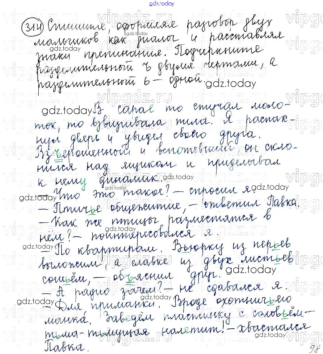 Ответы к Часть 1. Решение к упражнениям 314 Учебнику по Русскому языку для 5 класса Баранов, Ладыженская Просвещение, Просвещение 2016, 2019