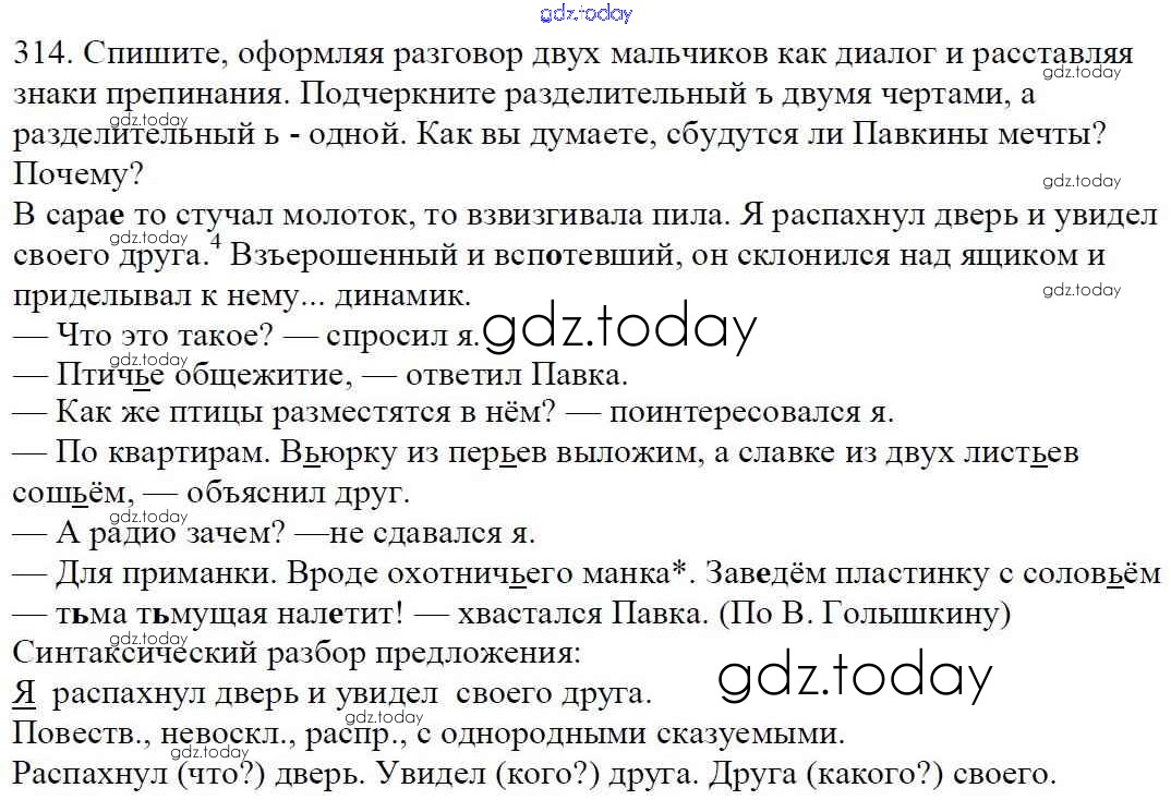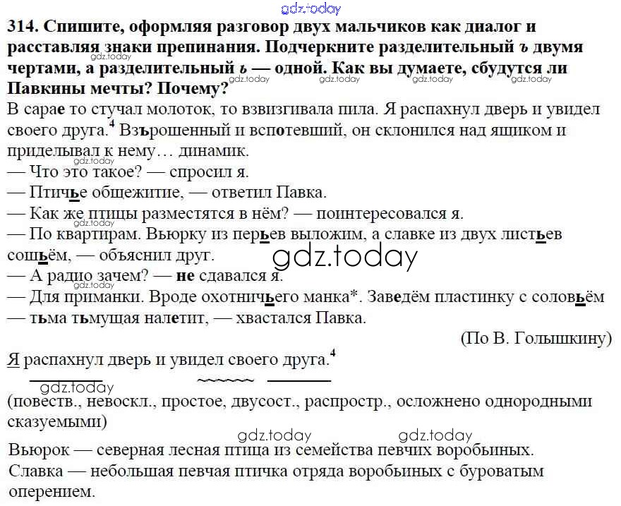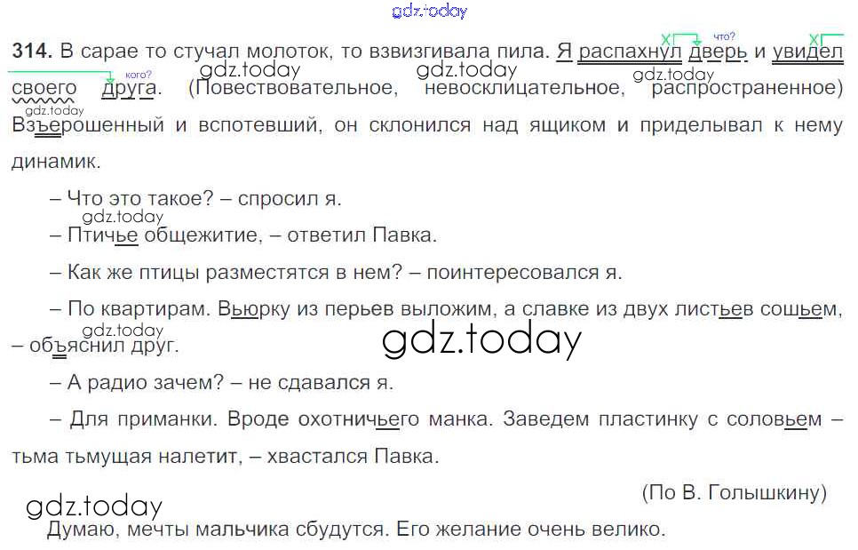 На страницах сайта gdz.today вы найдете учебный и вспомогательный материал, направленный на улучшения знаний школьной программы. ГДЗ - онлайн мир знаний Часть 1. Решение к упражнениям 314 Учебнику по Русскому языку для 5 класса Баранов, Ладыженская Просвещение, Просвещение 2016, 2019