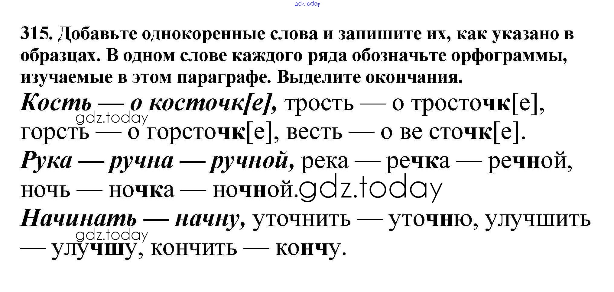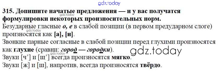 На страницах сайта gdz.today вы найдете учебный и вспомогательный материал, направленный на улучшения знаний школьной программы. ГДЗ - онлайн мир знаний Часть 1. Решение к упражнениям 315 Учебнику по Русскому языку для 5 класса Баранов, Ладыженская Просвещение, Просвещение 2016, 2019