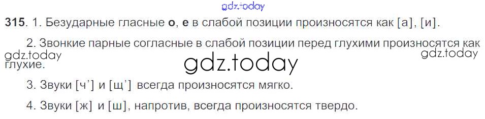 Ответы к Часть 1. Решение к упражнениям 315 Учебнику по Русскому языку для 5 класса Баранов, Ладыженская Просвещение, Просвещение 2016, 2019